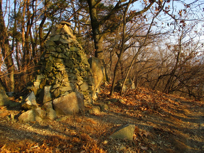 다시 쉬엄쉬엄 올라서면 자연으로 돌아가고 있는 봉분들을 만나고~ 봉우리에서는 왼쪽으로 휘어져 올라간다!~