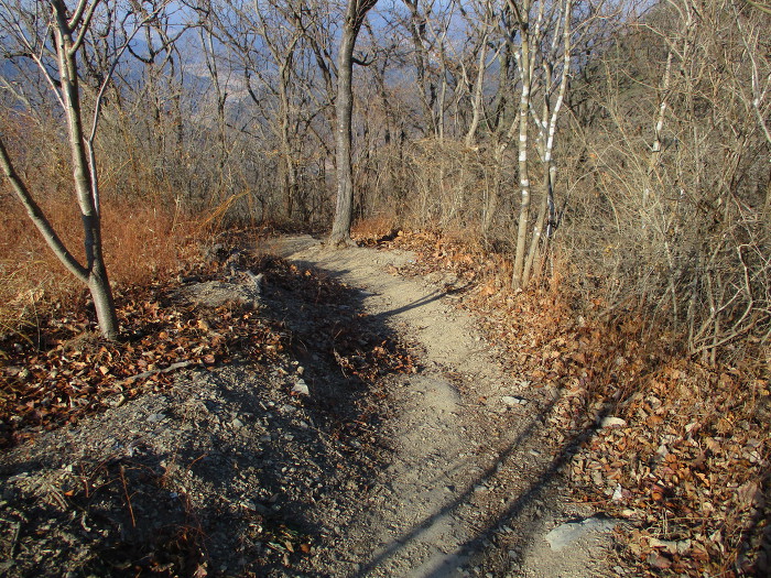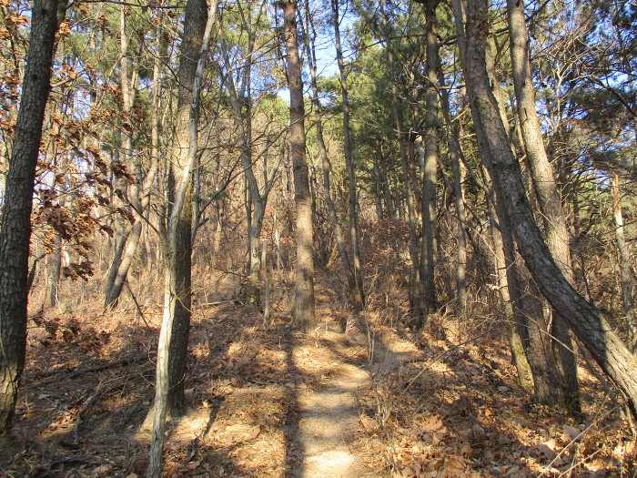 날씨가 완전 봄 날씨네!~헥헥!~ 하늘이 보이는 능선도 한참 올라간다!~