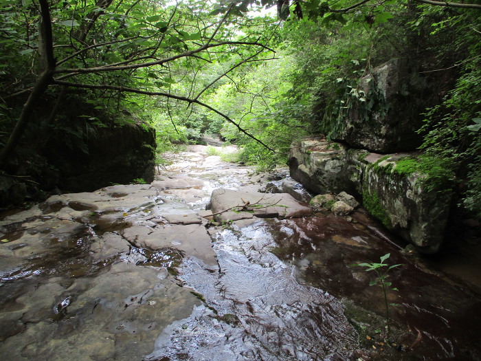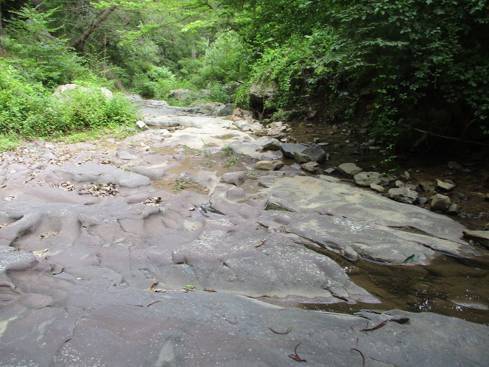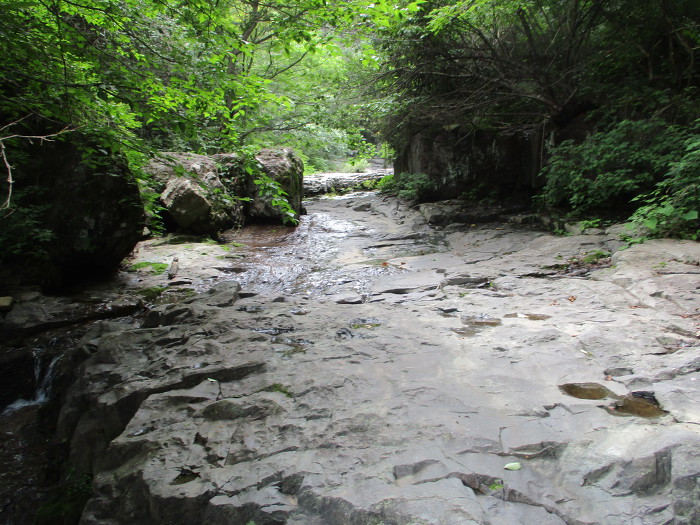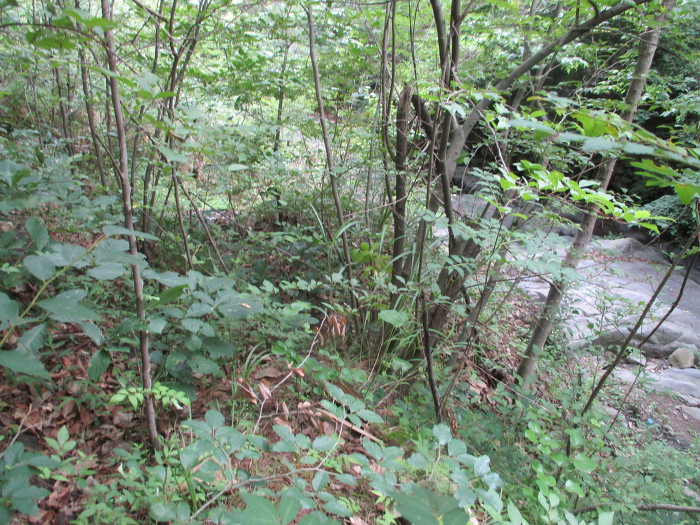 계곡길이 계속 핀핀한 넙떡돌로 되있는강 케띠마는 100m 정도 지나이 또 잡목밭이네!~