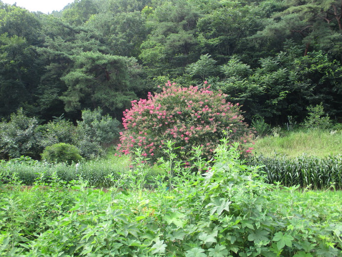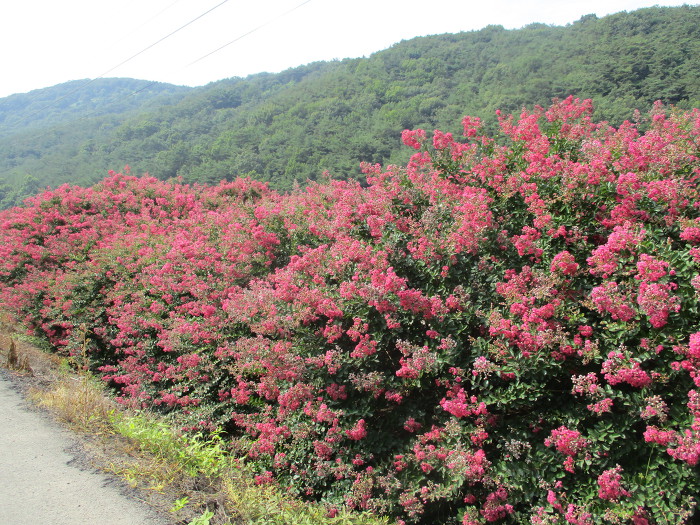 배롱나무라 카는 백일홍이 예뿌네~ 꽃나무가 귀한 여름에 대접을 받는 나무!~