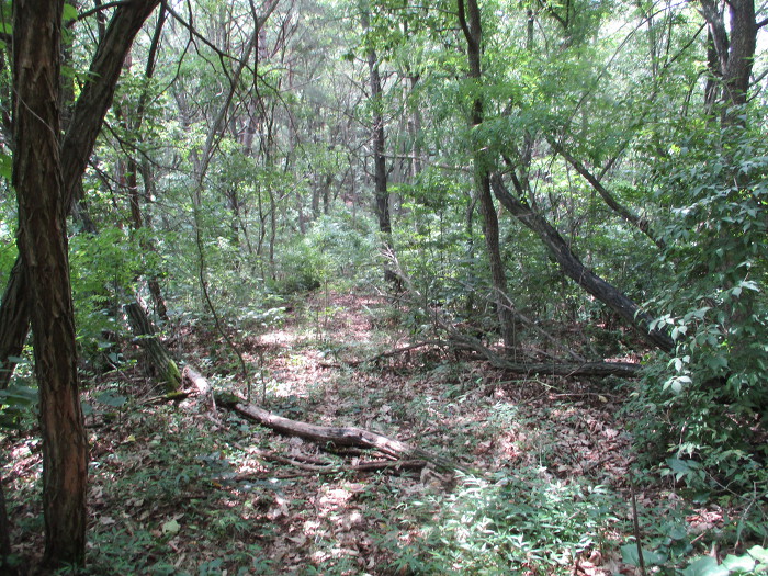 왼쪽 사면~잡목숲~공터~왼쪽으로~까시잡목 헤치고~멧돼지 목욕탕~213.9봉~왼쪽 사면~