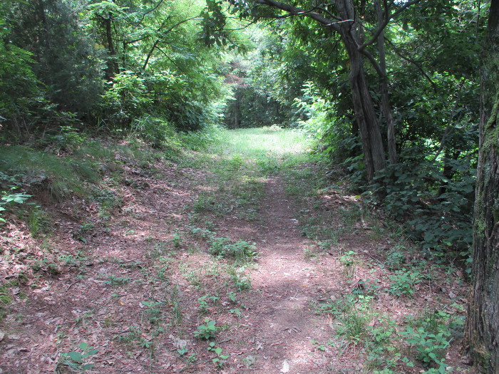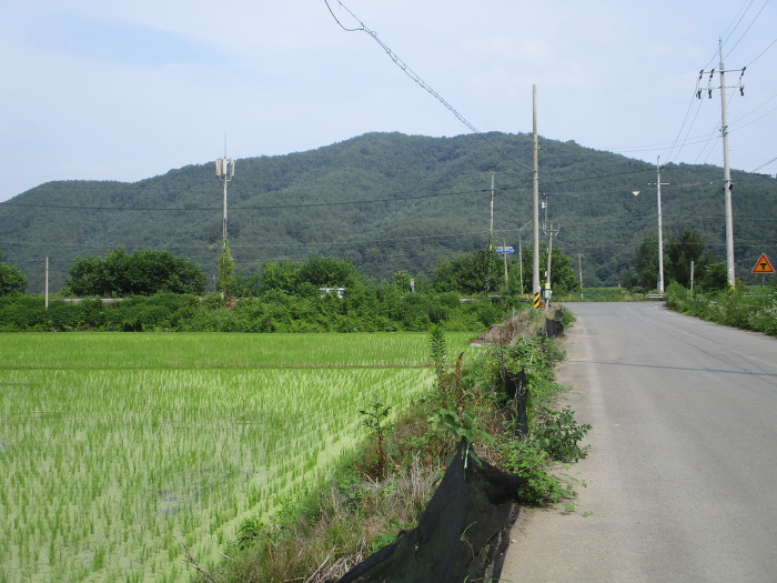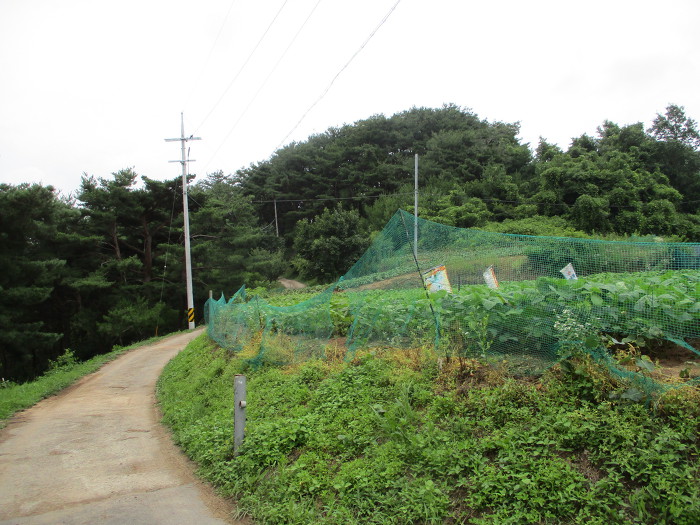 포장도로를 따라 가다가 전봇대 오른쪽 밭 있는데 희미한 족적이 보이가 올라간다!~