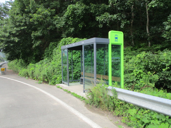 마을 삼거리 공터에 똥차를 새아노코 능선이 시작되는 버스정류장 입구로 가가 안쪽을 들따보이~
