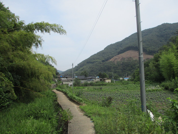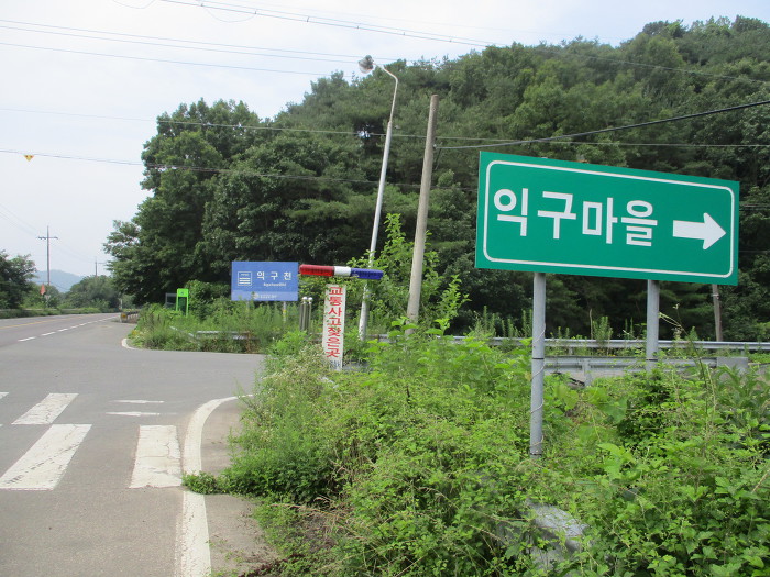 오르내리기 반복~오른쪽 옹벽으로 올라~옹벽길따라~마을 진입~오른쪽으로~익구마을회관~
