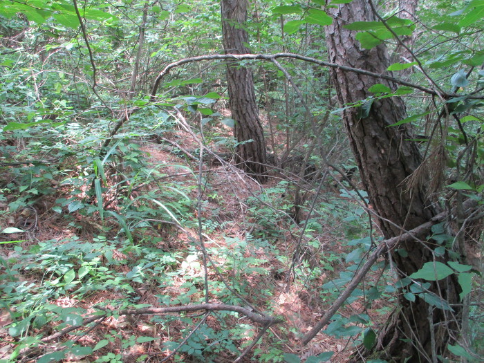 삼각점 못찾음)~오른쪽 능선으로~길희미~덩쿨~묵묘~오른쪽 흐릿한길~왼쪽으로 휘어져~