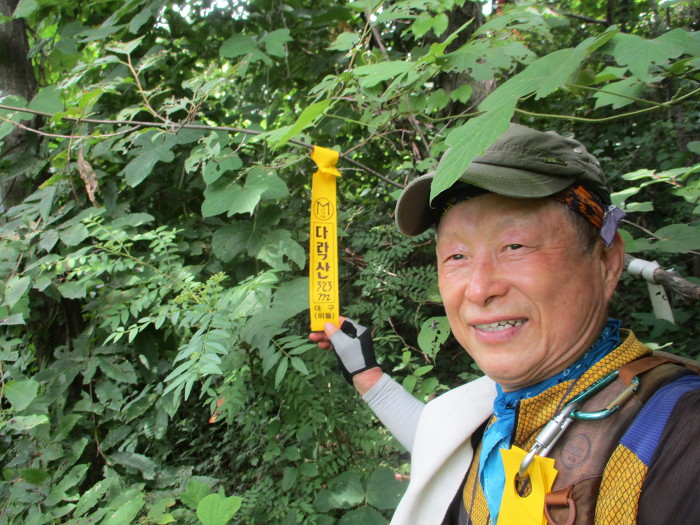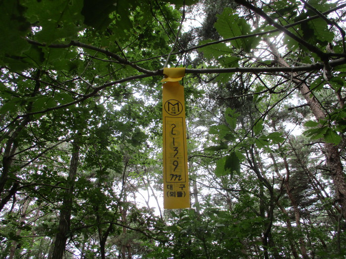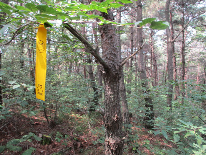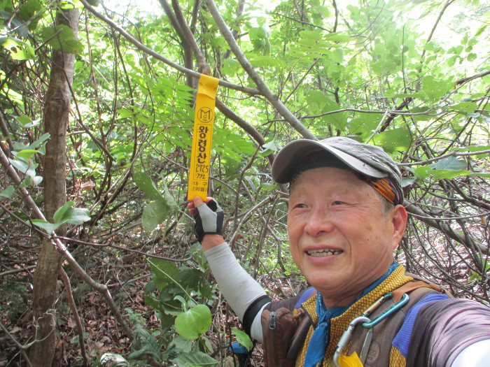 표지기를 걸고 한컷!~ 소금도 쪼매씩 묵고 사탕도 2개나 깨묵었는데 땀을 너무 마이 흘리끼네 힘이 없네!~