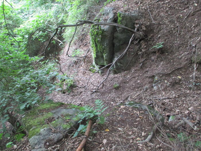 계곡으로 가파리게 내리가는데 전날 내린 비로 흙이 질어가 억사구로 미끄럽다!~ 미끄러분 바우 때문에