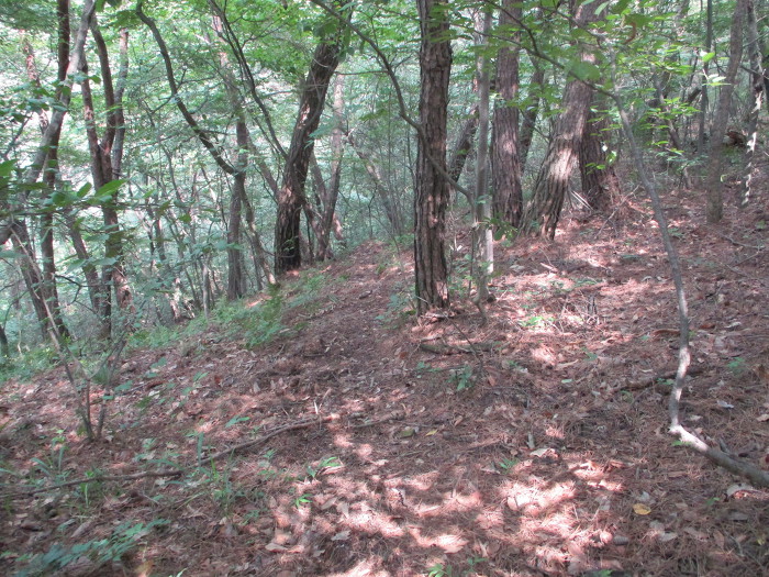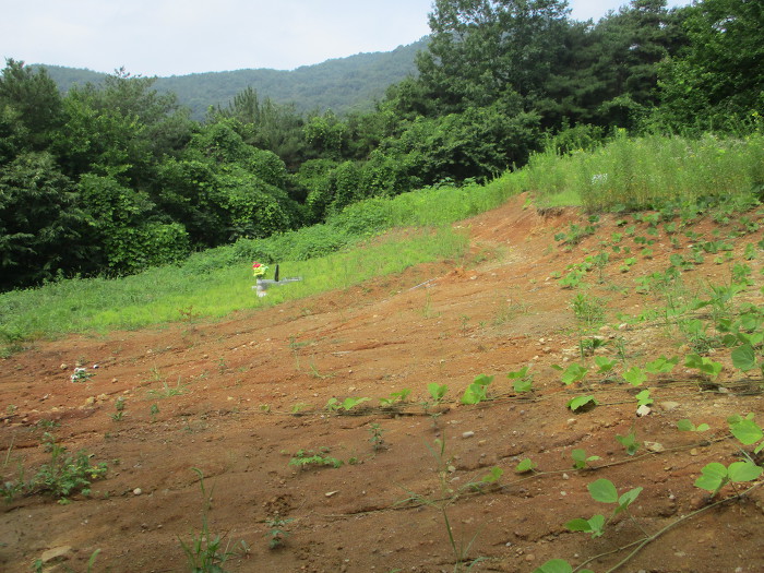 철망 담장 뒤 100여m 전방)~물통쪽으로 빽~왼쪽 능선 사면으로~주름진 거친 사면~계곡
