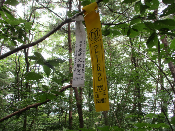 직진해서 숲으로 들어가는 길을 버리고 왼쪽 216.2봉을 찍고 가기로~