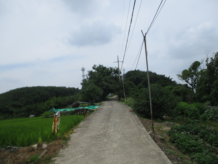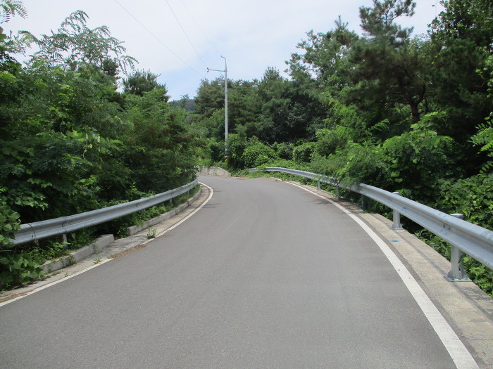 우향우를 해가 아스팔트 완만한 오름길을 올라간다!~ 땡빛을 받으미 올라가이 금새 마빡에 결로 현상이