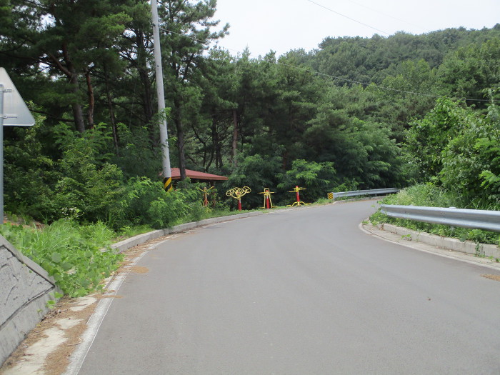잠시후 운동기구 쉼터가 보이미 아스팔트와 접속한다!~ 아스팔트 포장도로를 1km 넘끼 걸어가야 되는데 하필이마