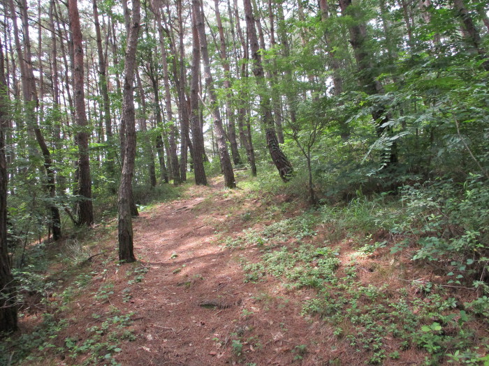 잡목지대 가파른 내림~사거리 안부(죽전고개)~좋은길로 오름~쉼터 정자~완만한 내림길~