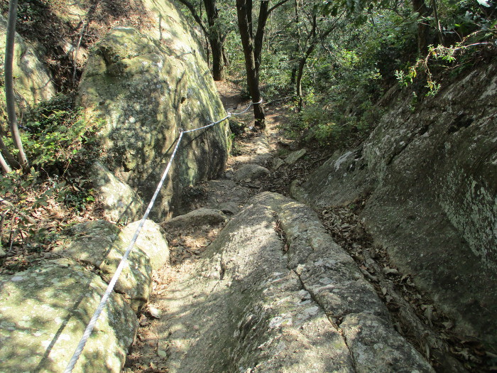 갓바위봉(119.4m)~계단 되내려와~오른쪽 갓바위 1km 방향~암릉따라~밧줄~