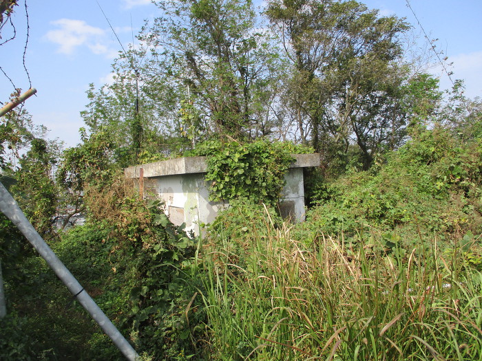 무신 초소긋은 건물이 보이고 그 옆 철망 담장에는 기맥꾼들의 표지기가 주렁주렁이다!~