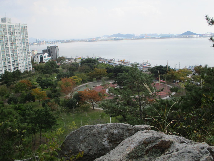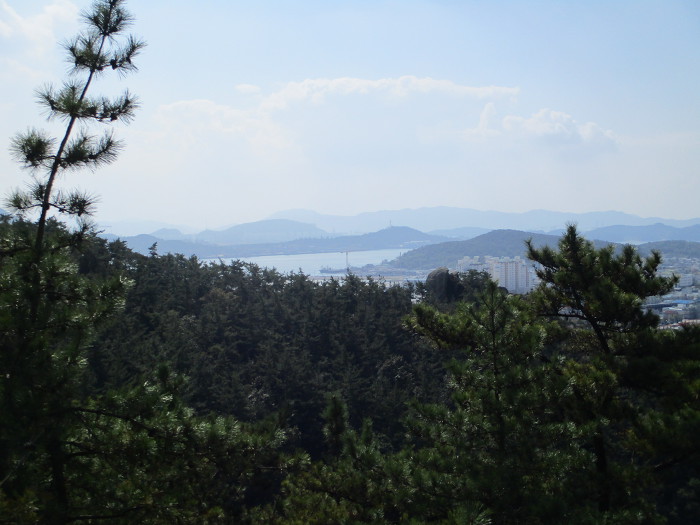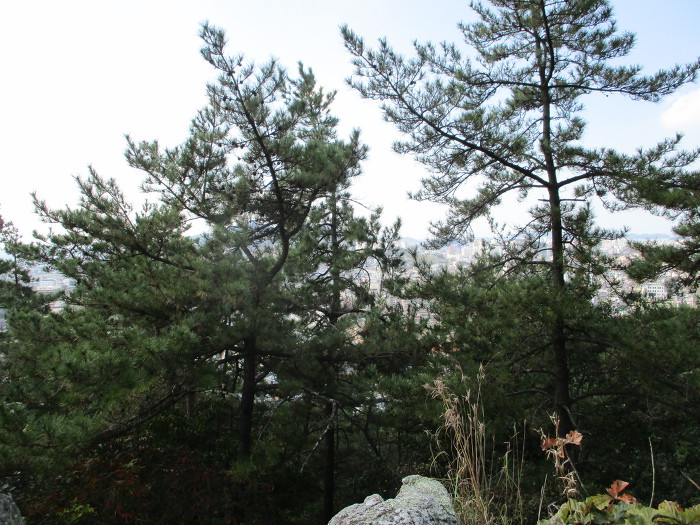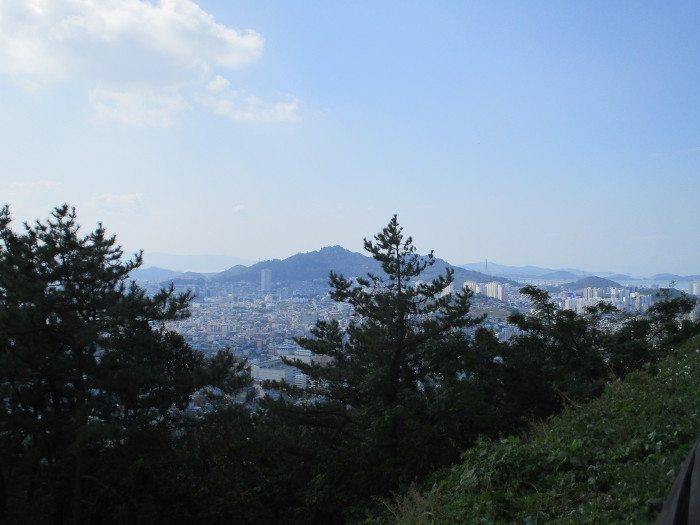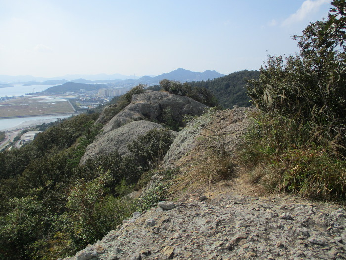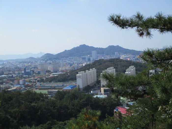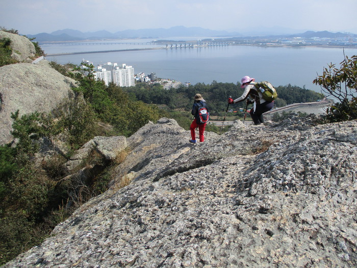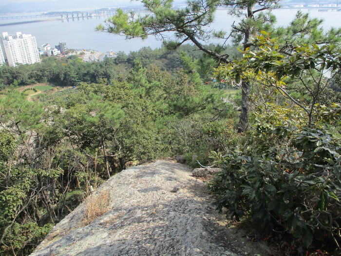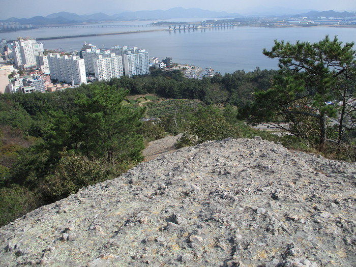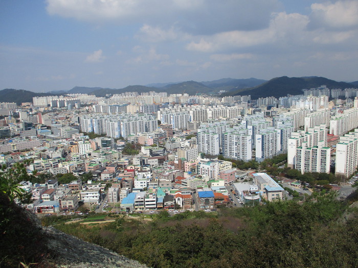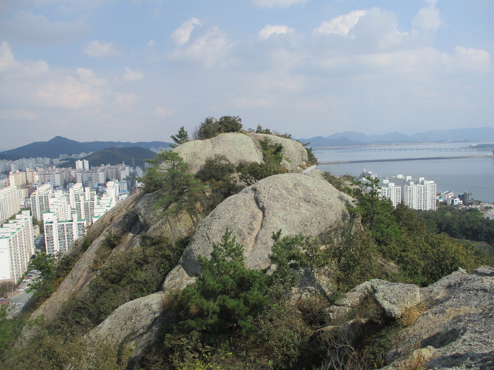 헤깔리는 건너핀 바우 봉우리는 궁디를 까대고 있는 것처럼 보이고 왼쪽 아파트 밀집 단지는 답답따!~