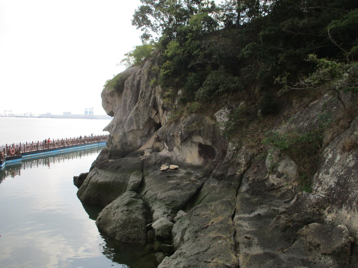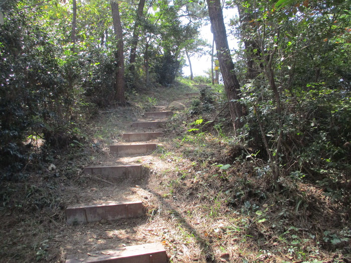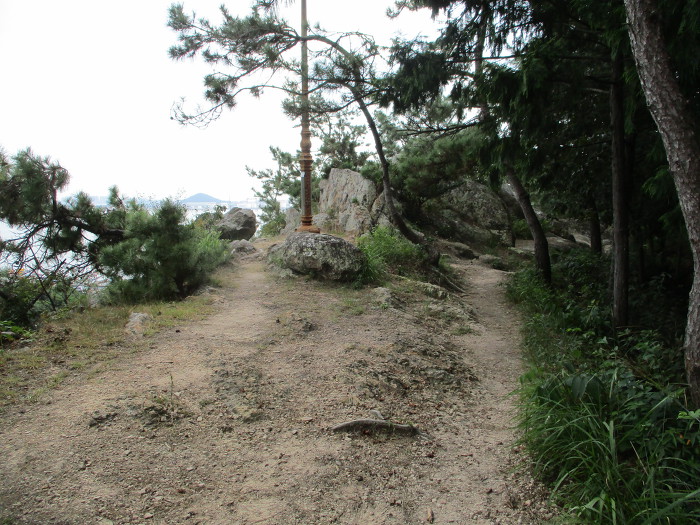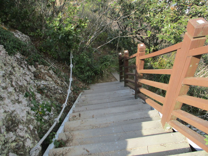 나무계단으로~오른쪽목포유람선 매표소 방향(화장실 수리중)~갓바위 표석~