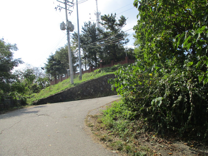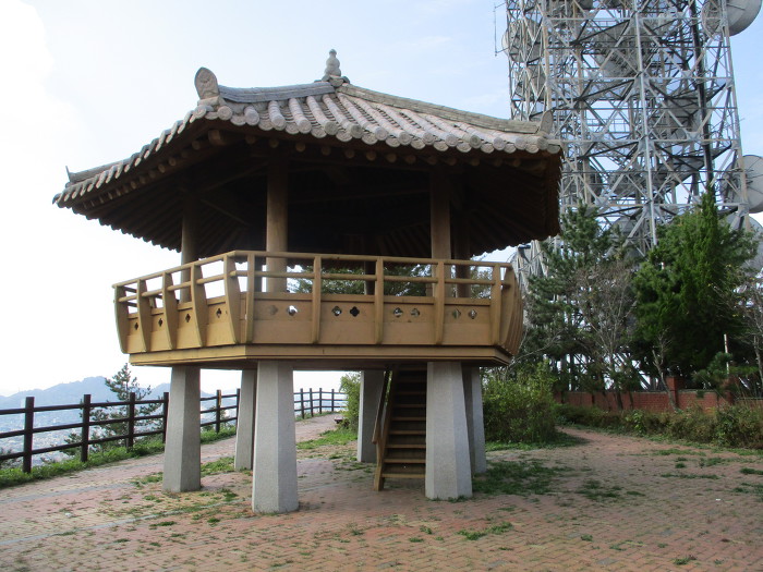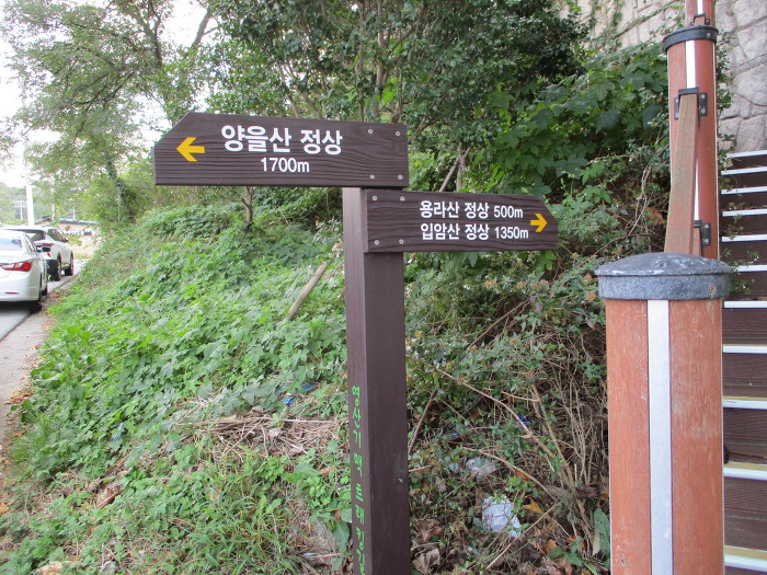 포장도로 왼쪽~케이티 송신탑~오른쪽 담장따라~양을산(154.2m, 쉼터 정자)~