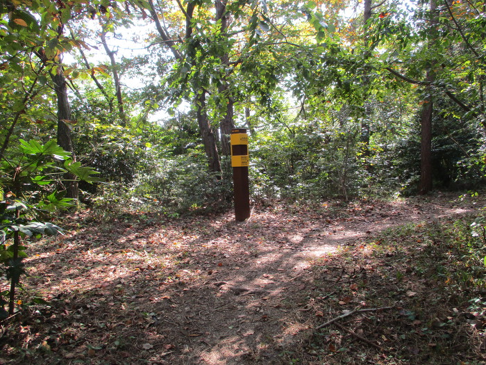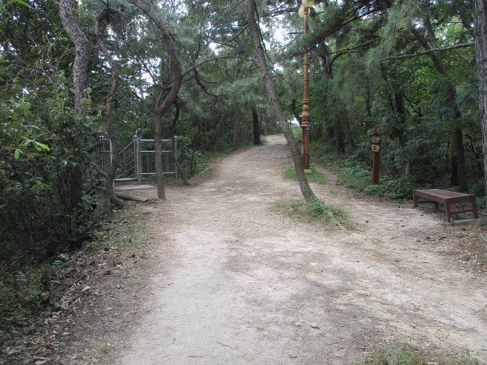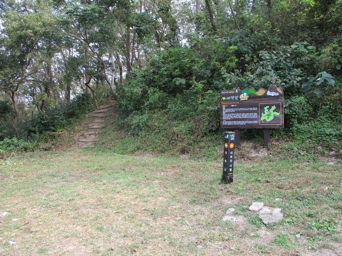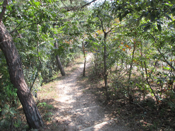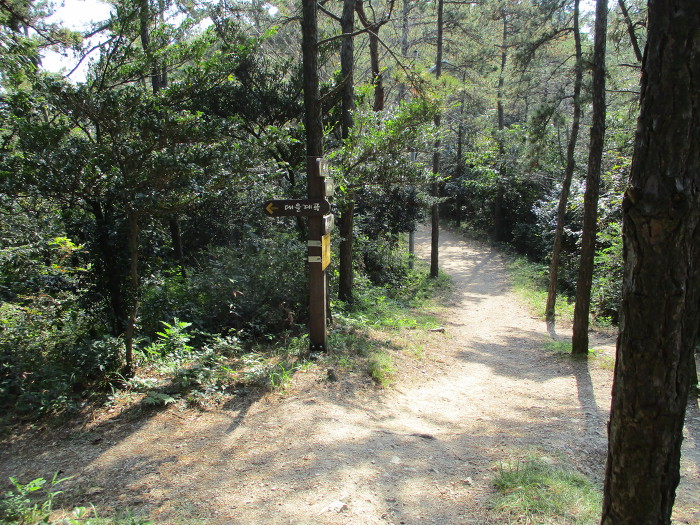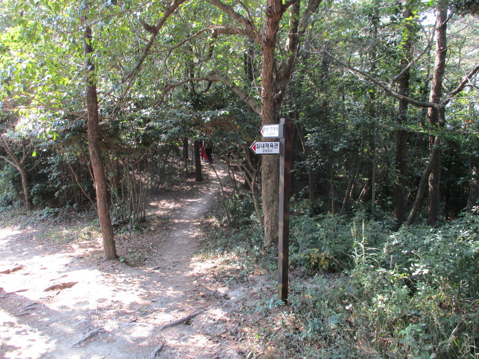 입암산(122.4m, 삼각점, 쉼터의자)~삼거리빽~오른쪽 내림길~쉼터의자,이정표~