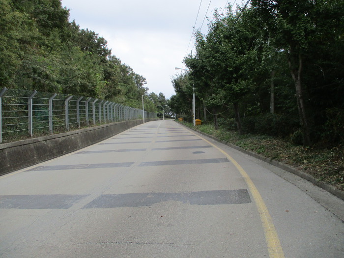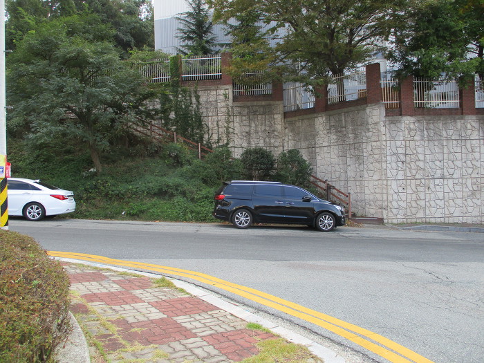 질러가는 길이긴 한데 다시 도로 우로 올라온다!~ 도로를 질러 올라온 셈이다~ 도로 오른쪽으로~