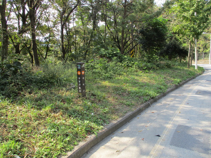 다시 터덜터덜 내리가마 왼쪽으로 달맞이공원 60m를 가리키는 이정표가 보이가 주차장에서 만나자