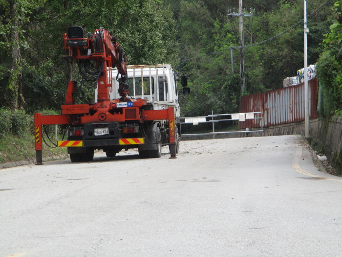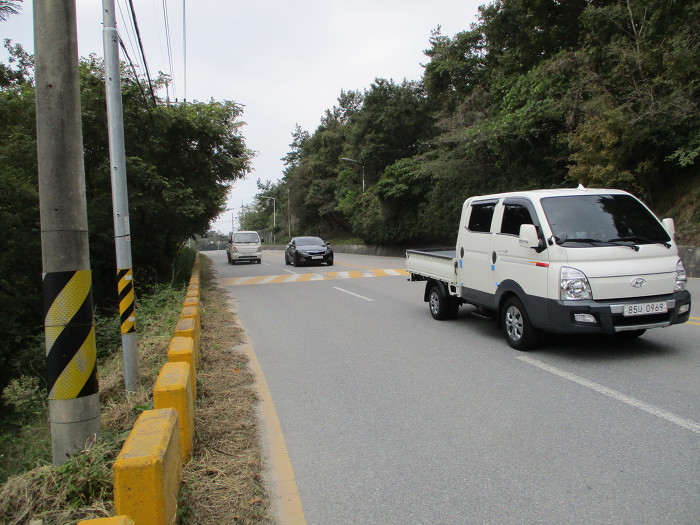 올라오이 차들이 억사구로 마이 댕기는 번잡한 도로인데다 도로를 내니라꼬 사면을 깍아나가 벼랑