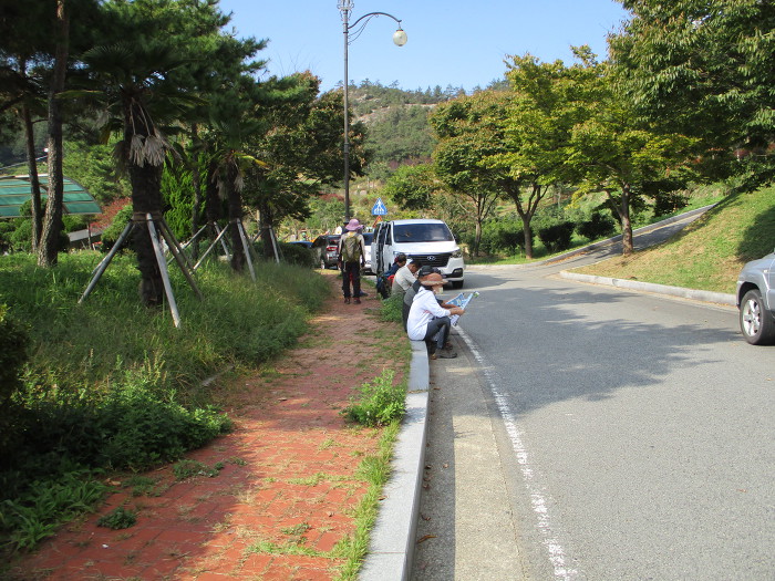 도자기 박물관을 지나 도로 안쪽으로 들어서면 지대장 차가 보이고 짤븐 산행을 한 또랑조들이 휴식을