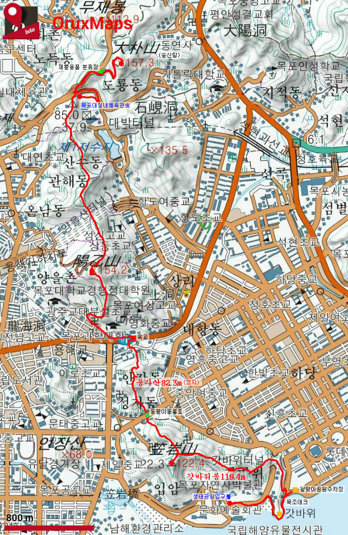 대박산을 찍고 양을산으로 가는 뫼들 때문에 목포대 실내체육관에 널짜주는데 본 캠퍼스가 있는 용해동과는