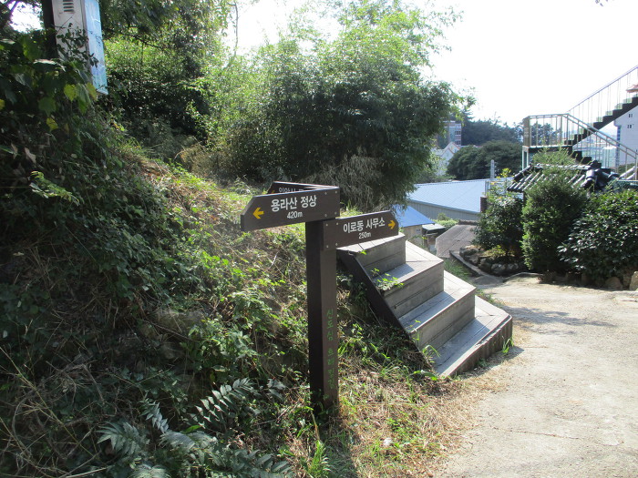 침목계단~용라산 정상 0.2km 방향 오른쪽~침목계단~용라산(82.3km, 쉼터정자)~