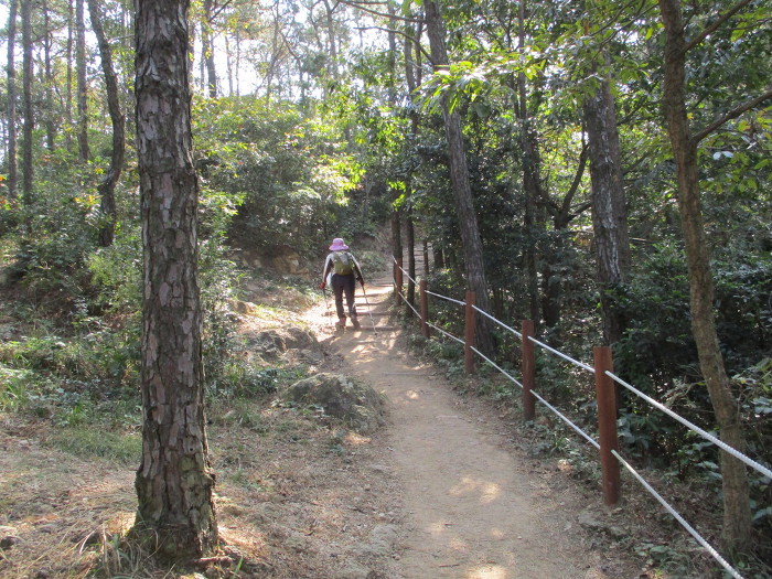 왼쪽으로~나무계단~왼쪽으로~밧줄~갓바위 800m 방향~정자 삼거리 직진~
