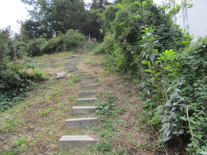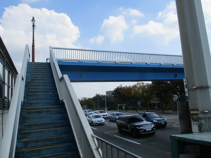 육교 방향~육교 지나 오른쪽으로 내려섬~다리건너~아파트 담벼락 나무데크 계단~