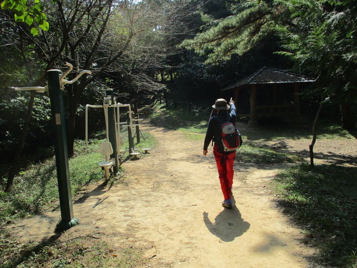 운동기구 쉼터~오른쪽으로~갈림길 삼거리(체육기구 쉼터, 정자)~오른쪽으로~