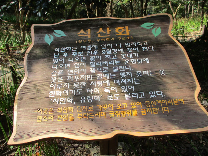 우회길 합류~침목계단 오름길~태을계곡 갈림길~꽃무릇 사거리~나무계단~사거리~