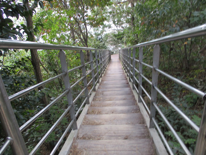 운동기구 쉼터~안전가이드 나무계단 내림길~동물이동통로~갈림길 삼거리~이정표