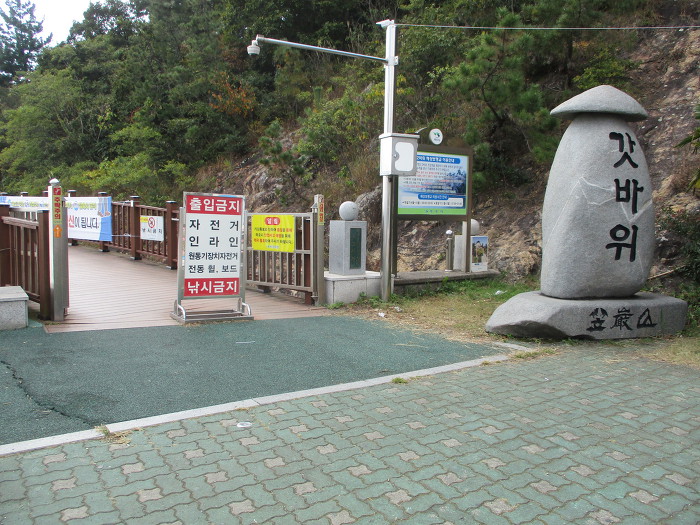 갓바위 표석을 지나 해변으로 나무데크 길이 나가있다~