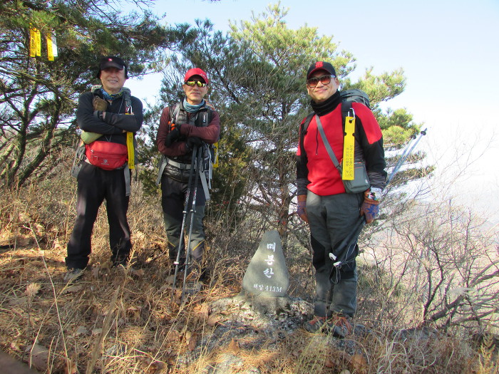 먼저 지나간 일당들을 포함해서 번개 산행팀들이 도배를 한다!~ 한문으로 '三峰山' 이라꼬 씨는데