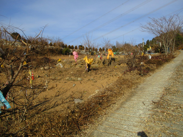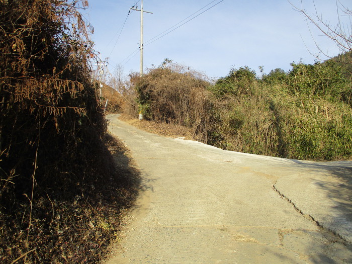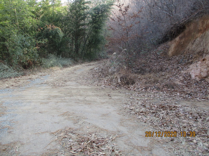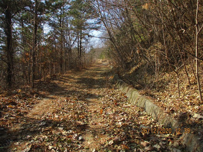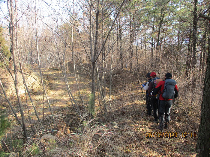 예전 집터나 무덤 경계인듯한 흙 울타리를 지나~
