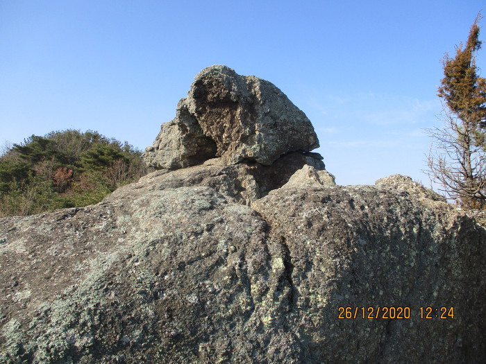 지형도상 벼락바위라 카는기 이 근처에 있지 시푼데 비스무리하이 쪼갈라져 있는기 안보이네!~