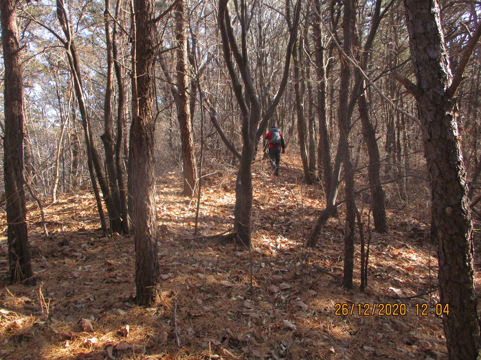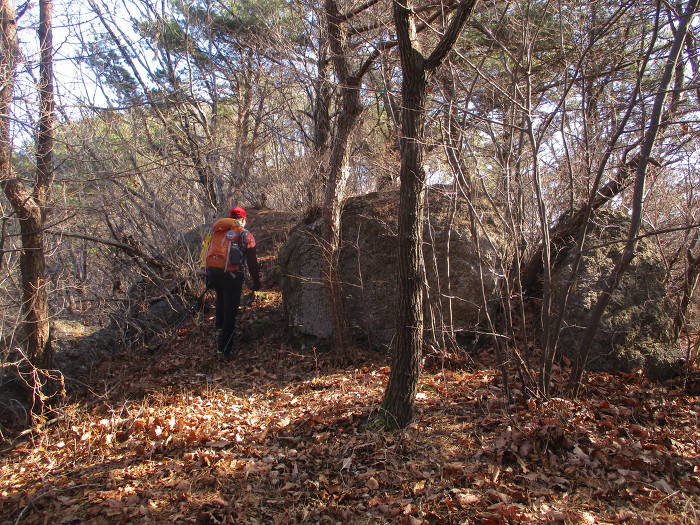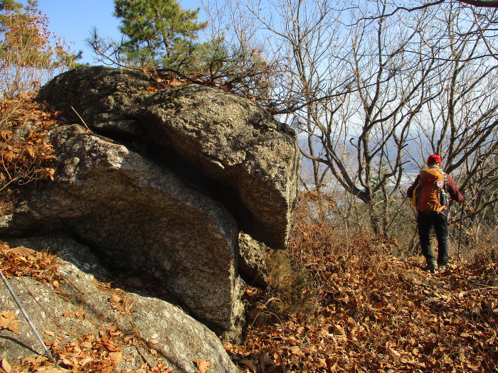 따문따문 나타나는 바위 지나~몇뿐 내려섰다 올라서고~가파르게 올라 왼쪽으로 휘어져