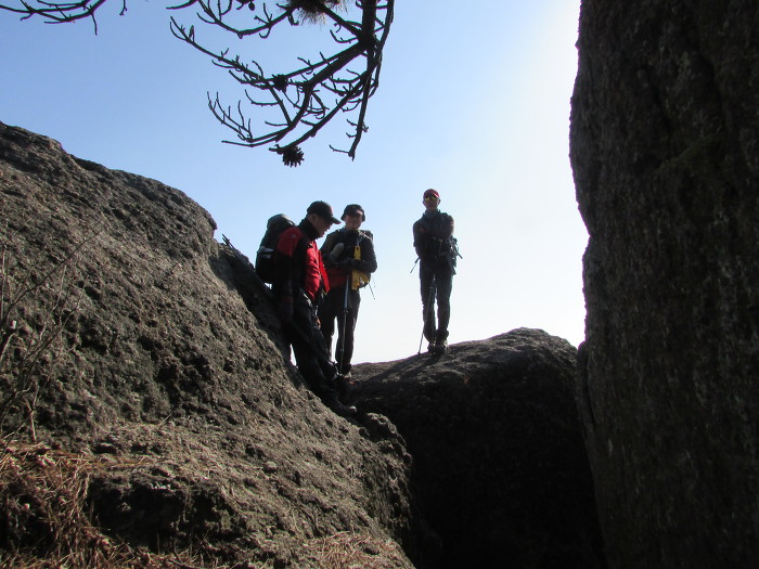다시 바우 사이를 지나는 눌루랄라 능선!~ 오늘은 번개산행팀 산행 중에 젤 핀한 걸음인듯~