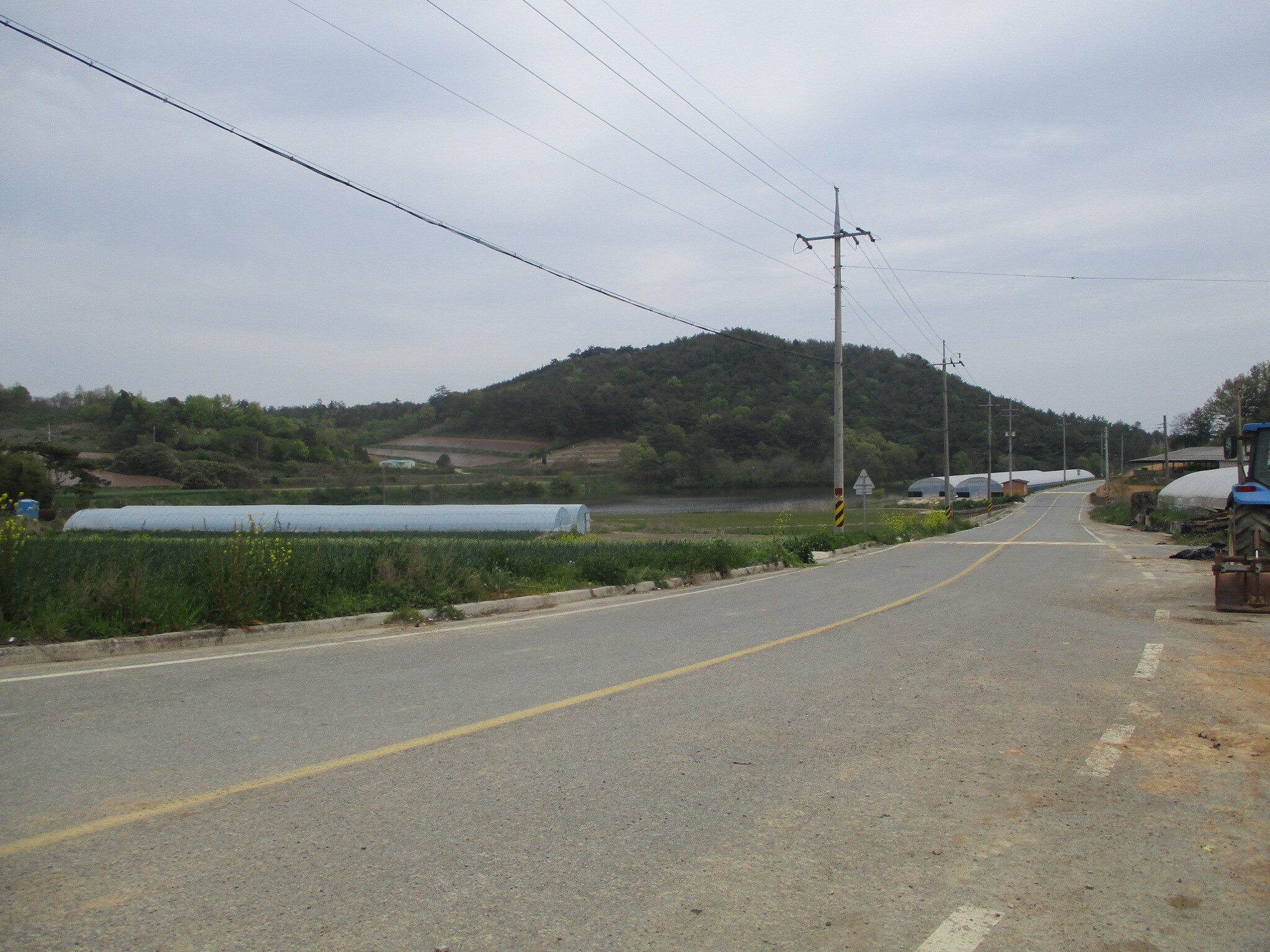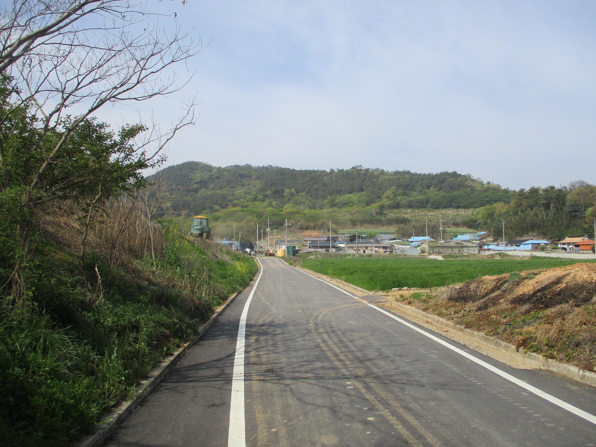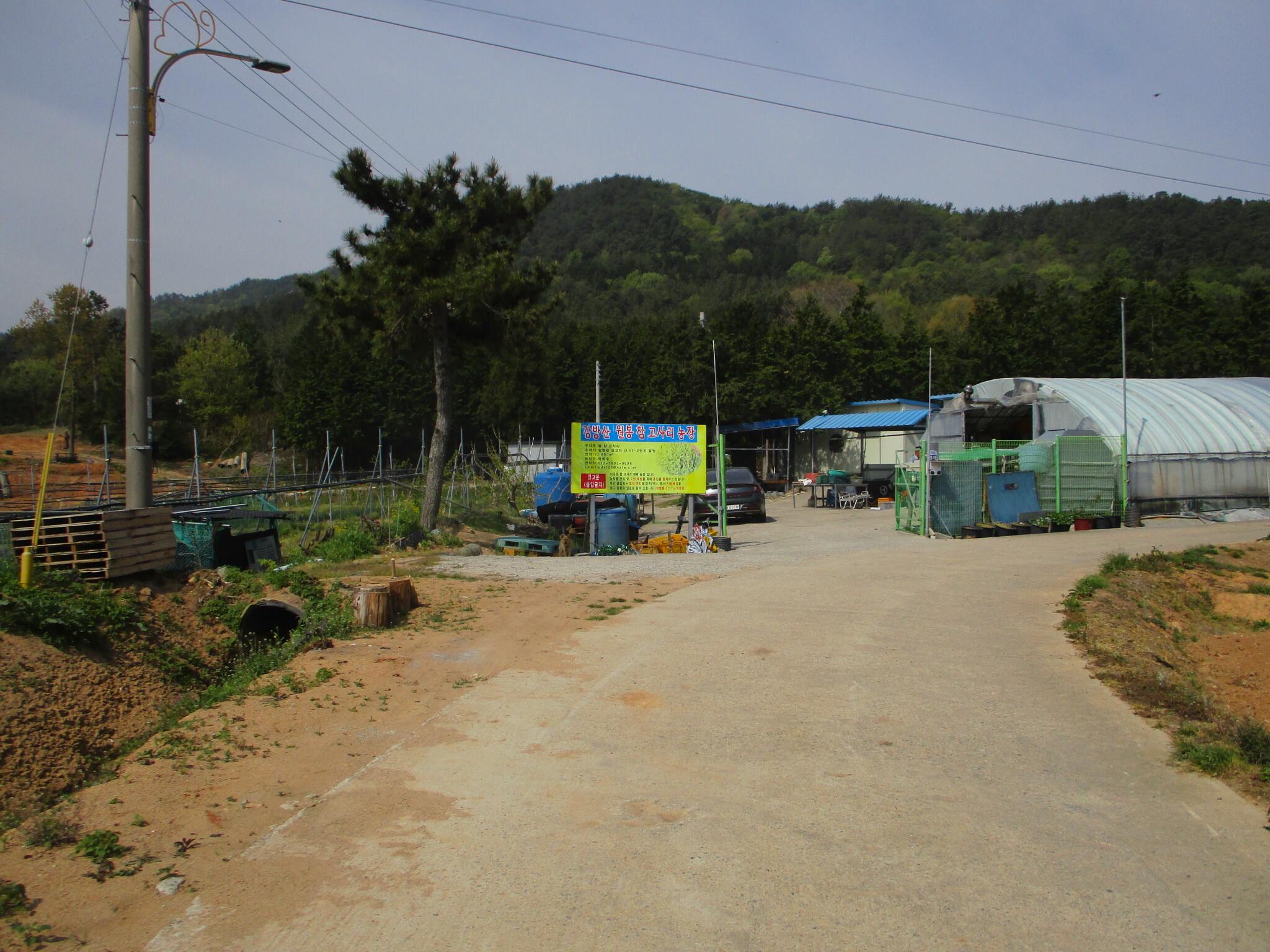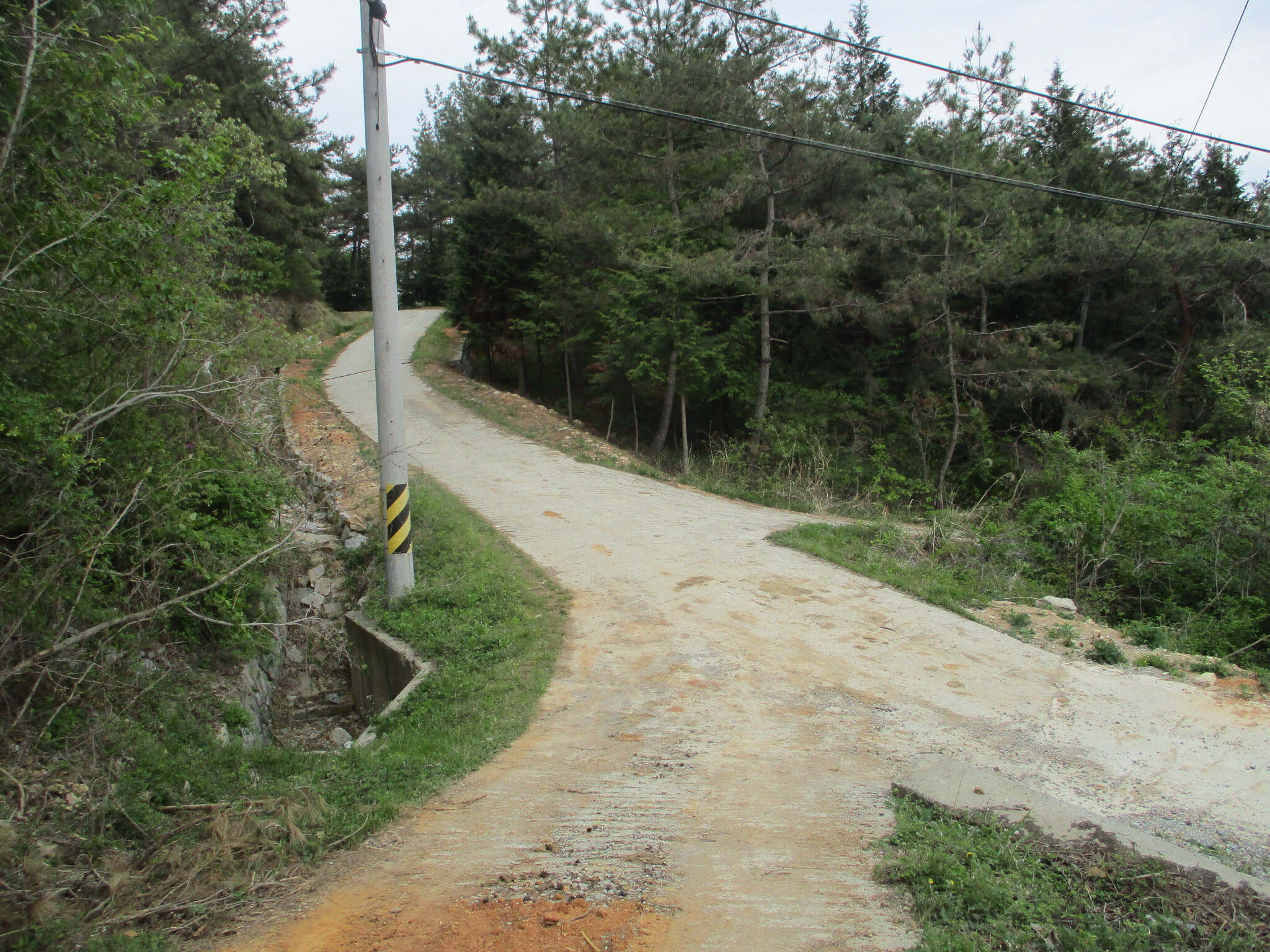 버스정류장 오른쪽으로 농기구 창고가 비고 최근에 포장한듯한 깨끗한 도로를 따라 올라간다~