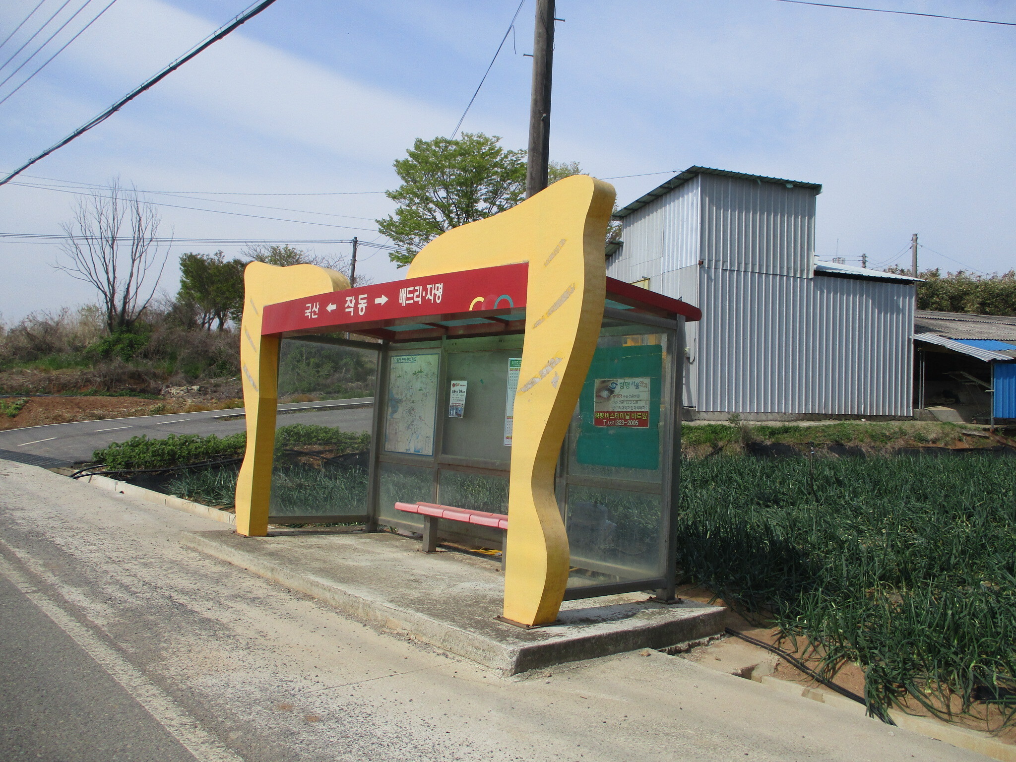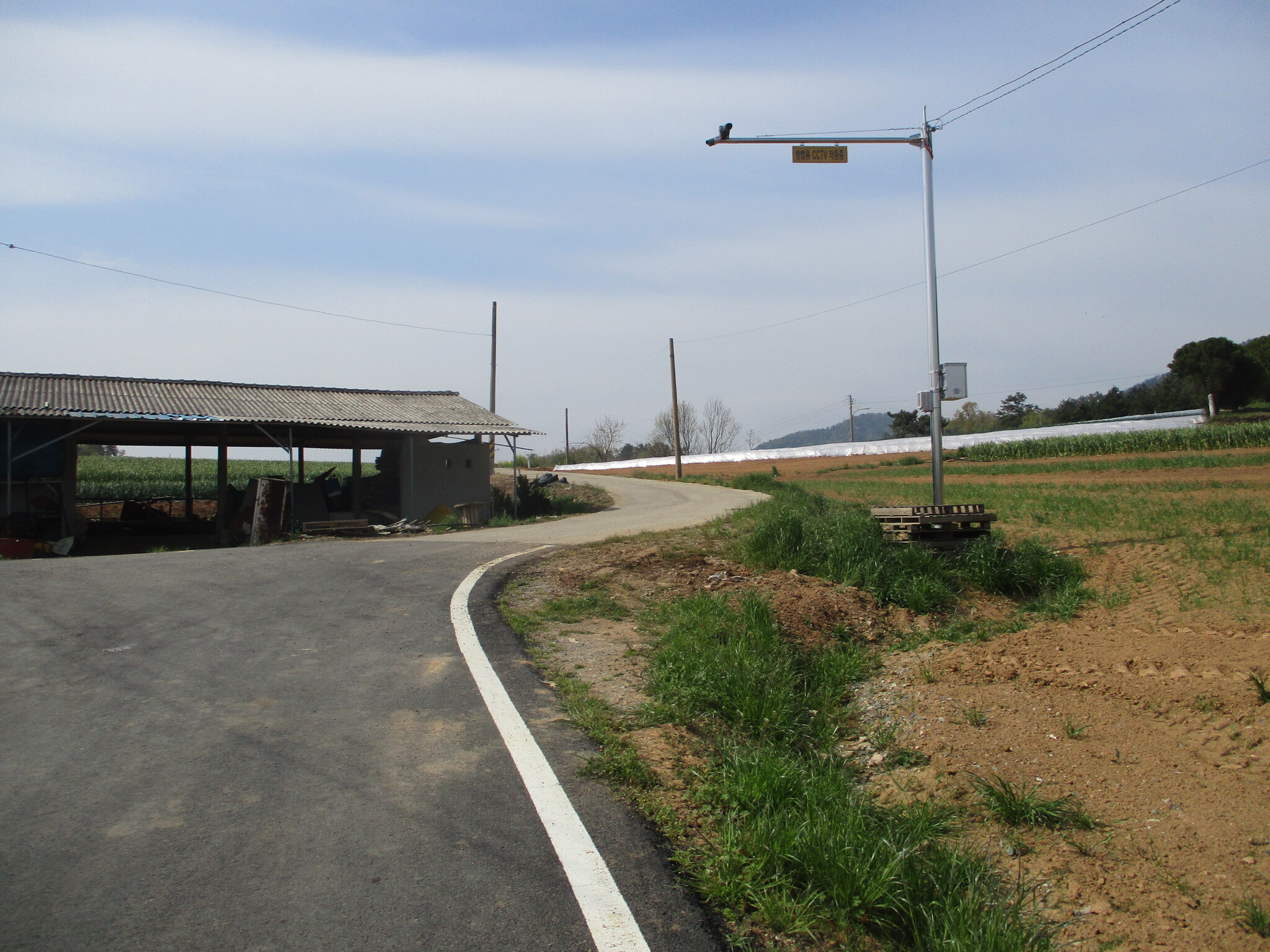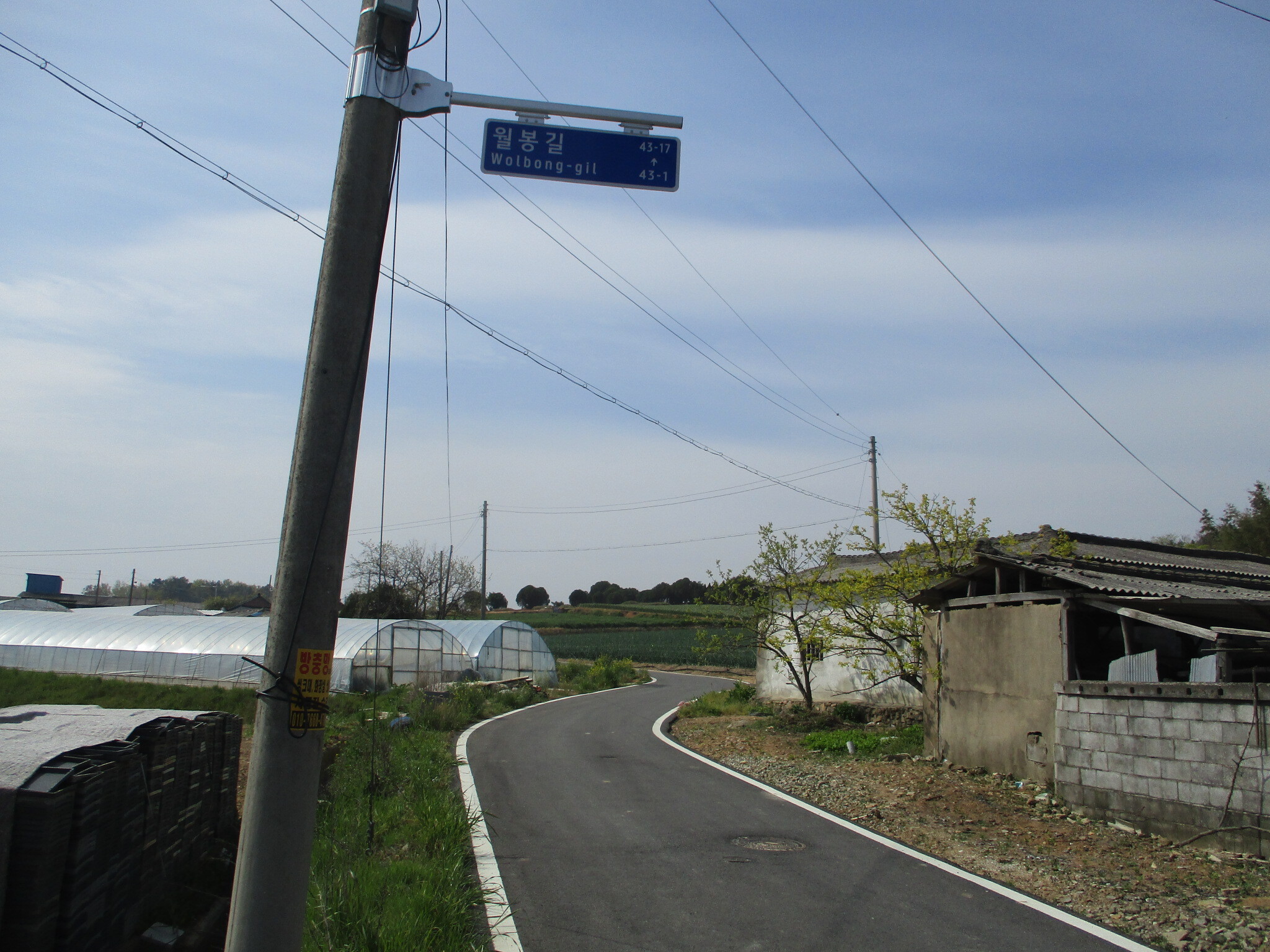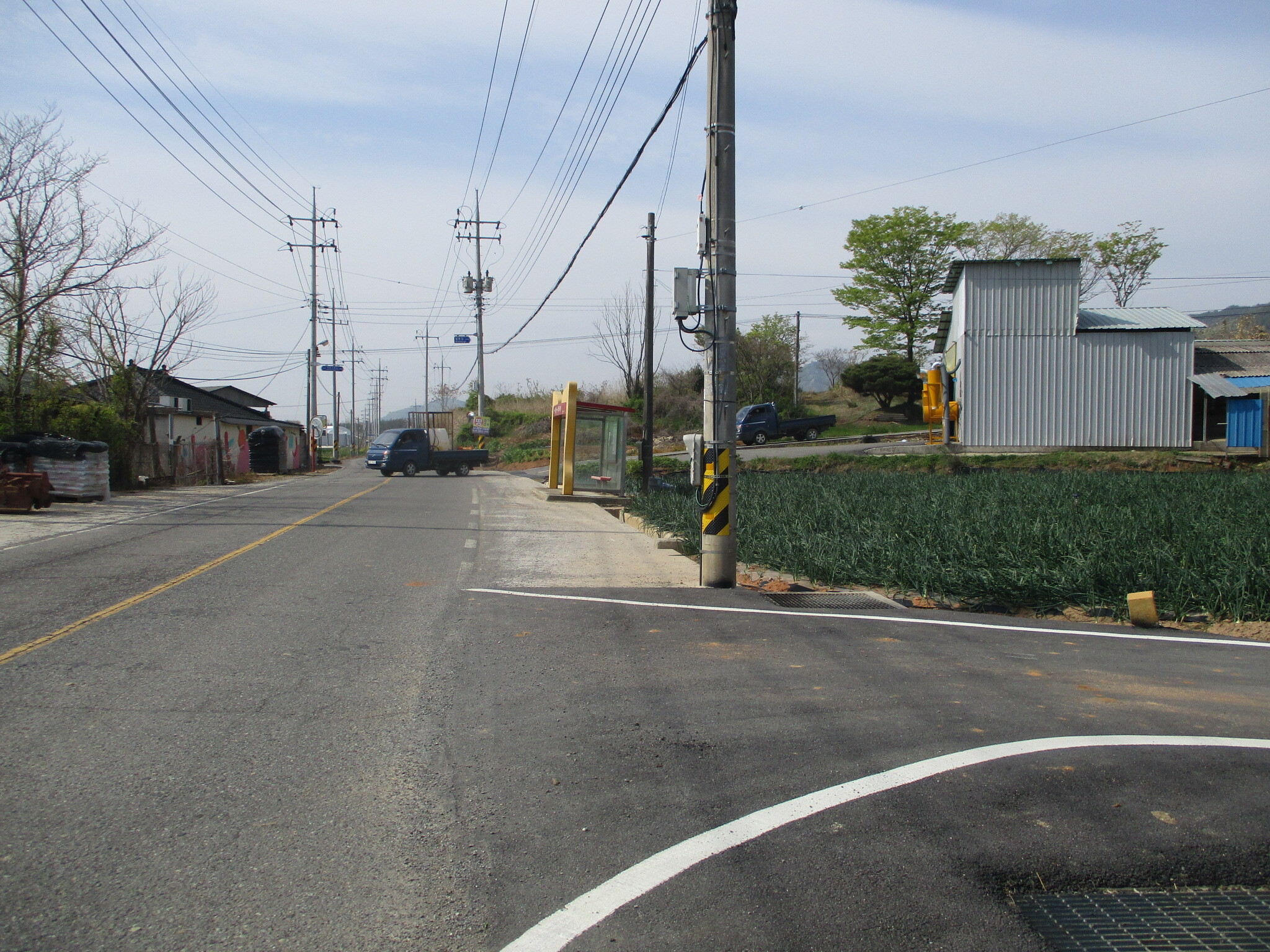 버스정류장 오른쪽으로 농기구 창고가 비고 최근에 포장한듯한 깨끗한 도로를 따라 올라간다~