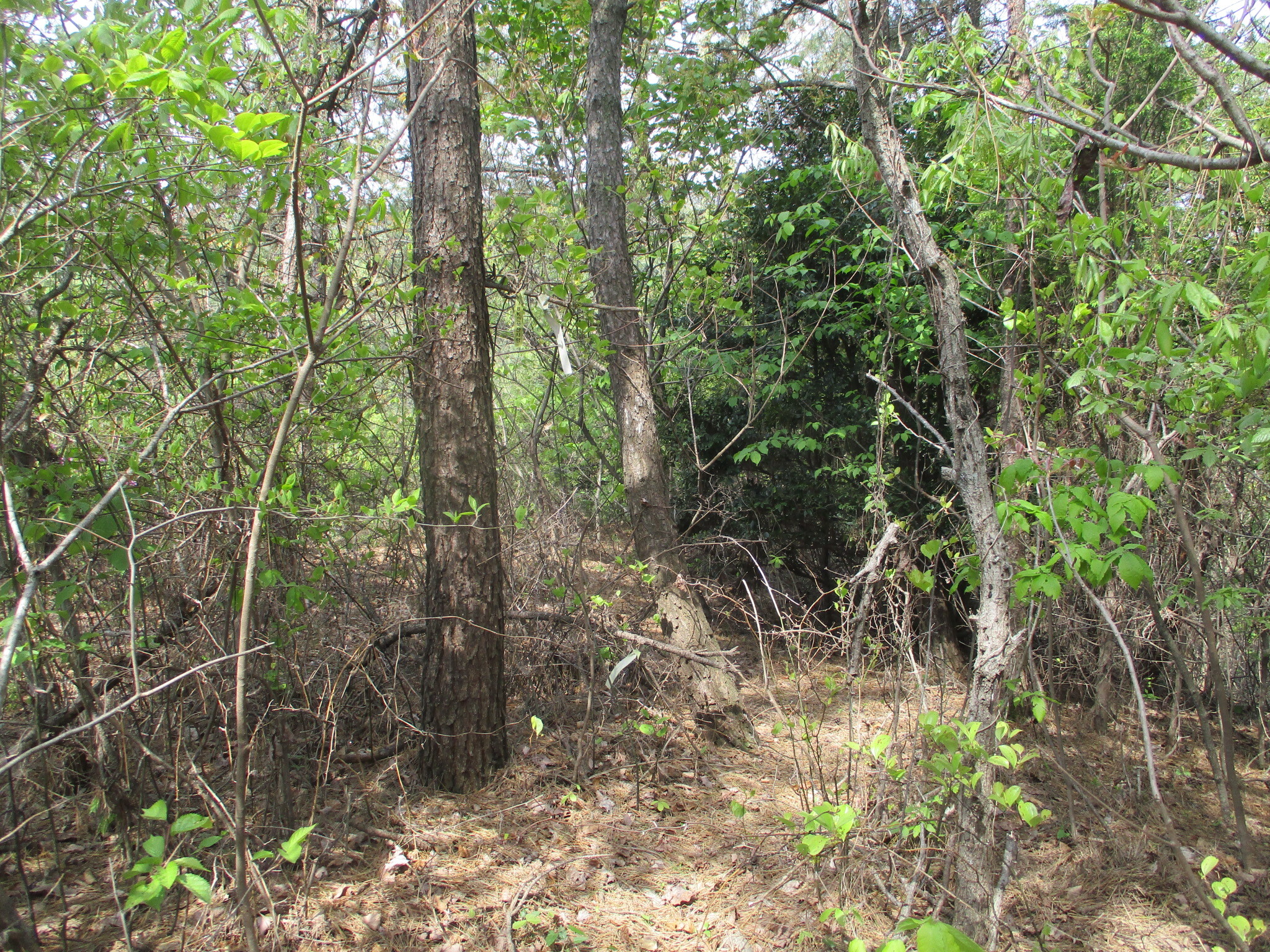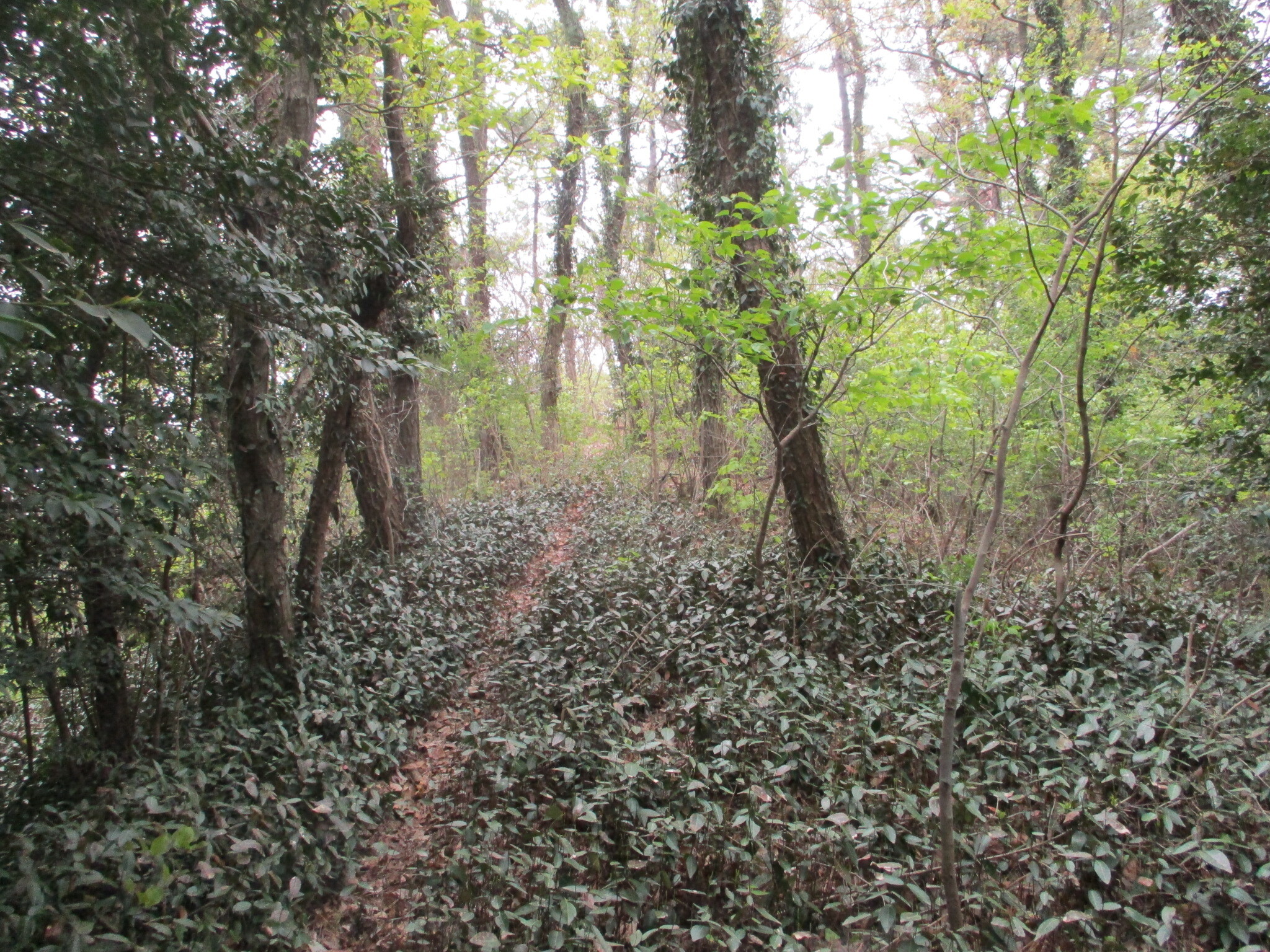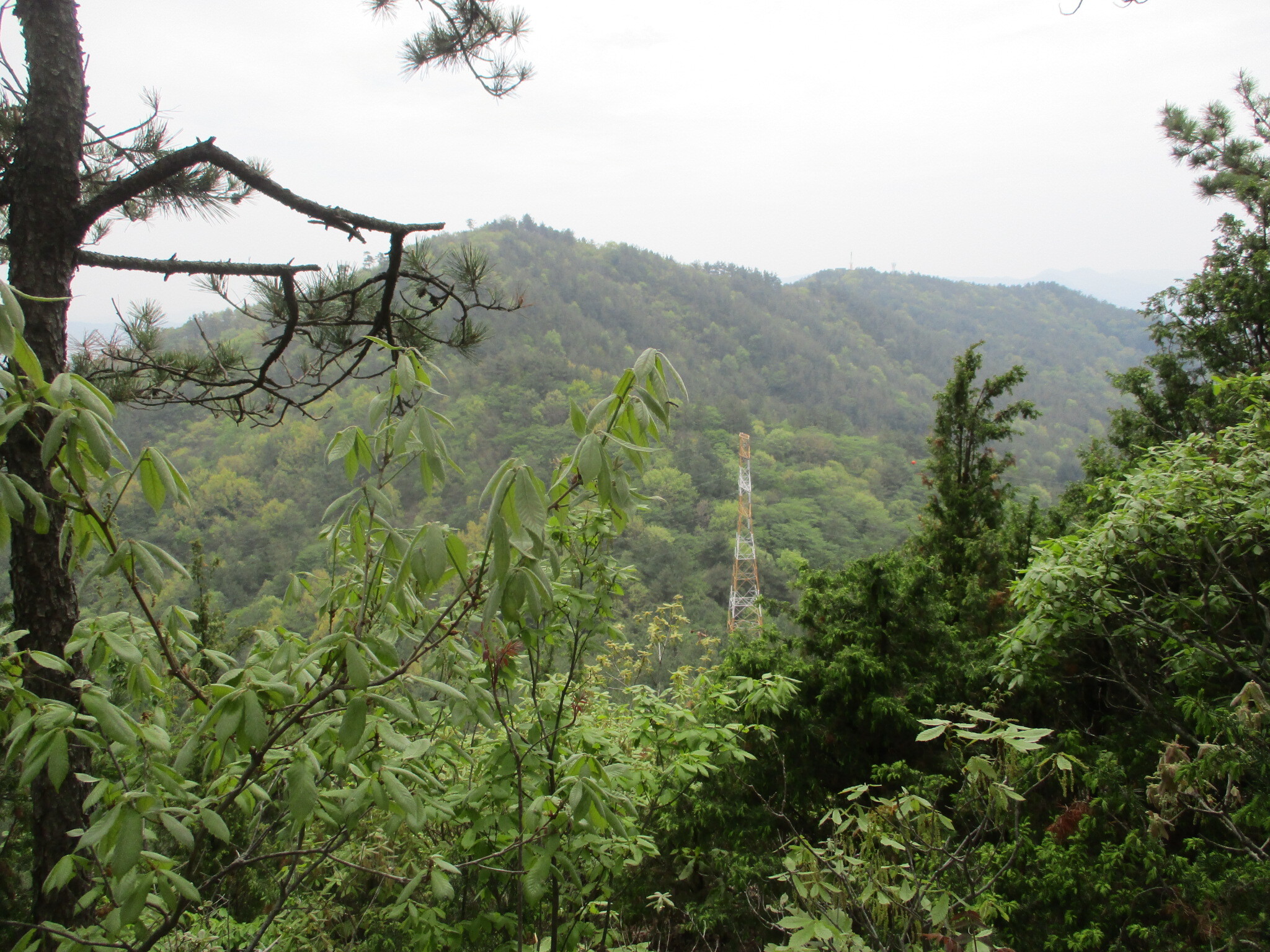 이리저리 헤치고 내려~철탑 안부(오른쪽 뚜렷한길 보임)~직진 거친 까시잡목 오름~보평산 전위봉~