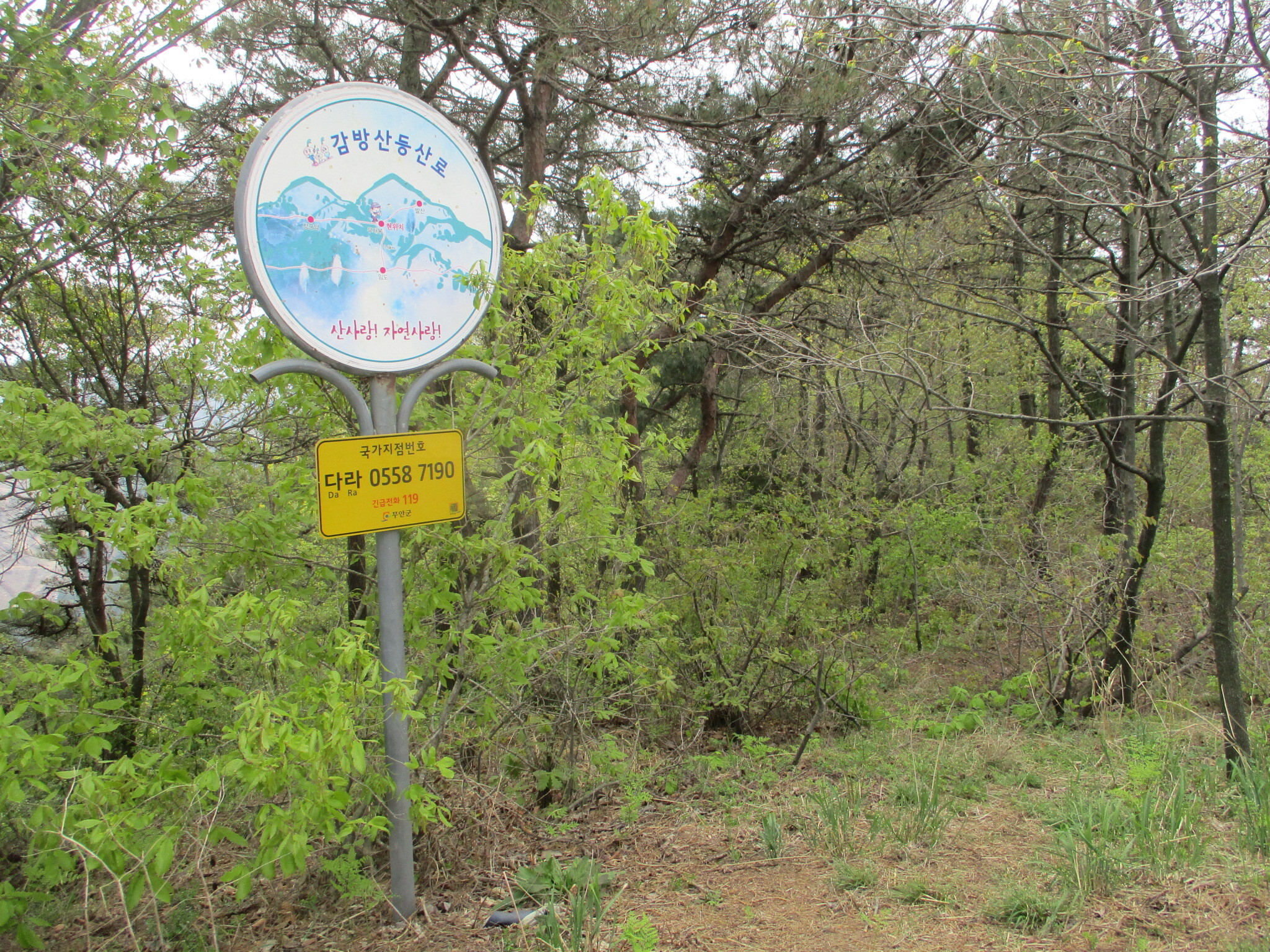 헬기장)~나무계단,감방산등산로 표지판 갈림길~직진 흐릿한 길로~다소 거친길~삼절송 왼쪽 내림~