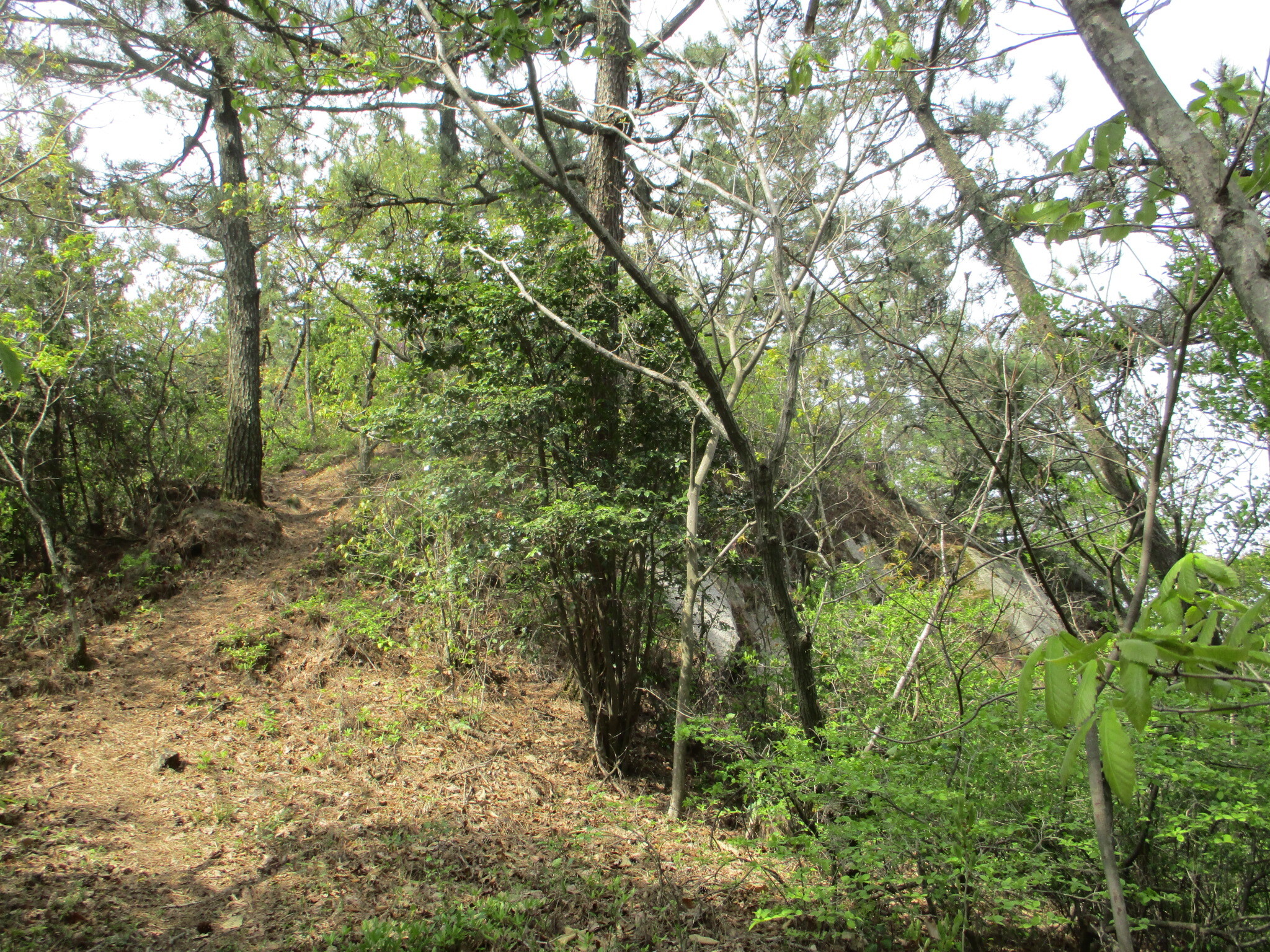 톱날긋은 까시는 발목을 감는다!~ 우야라꼬?~ 자유형으로 까시잡목을 걷어내미 올라서면 보평산 짱배기는 무거분
