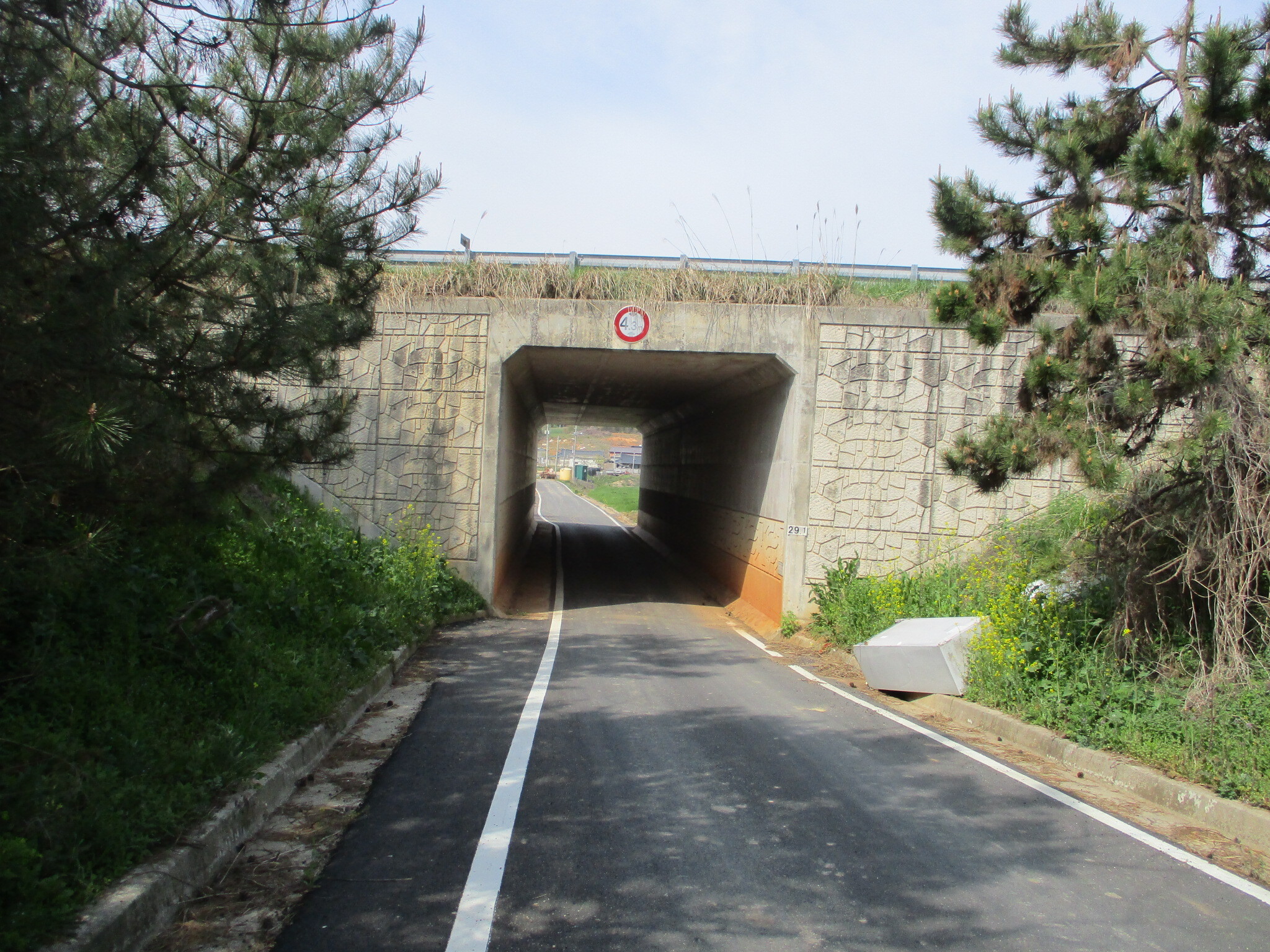 바우가 보이는 곳에서 다시 왼쪽으로 휘어져 내리섰다가 사스피레 나문강 똥꾸렁네가 디기나는 숲 터널을 만나는데