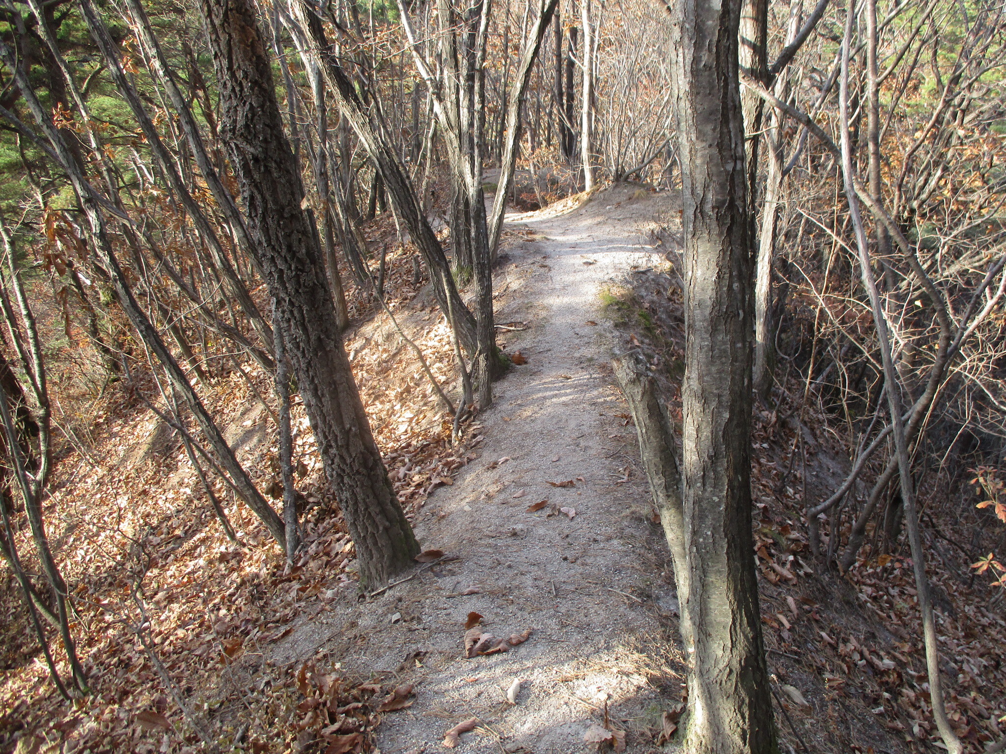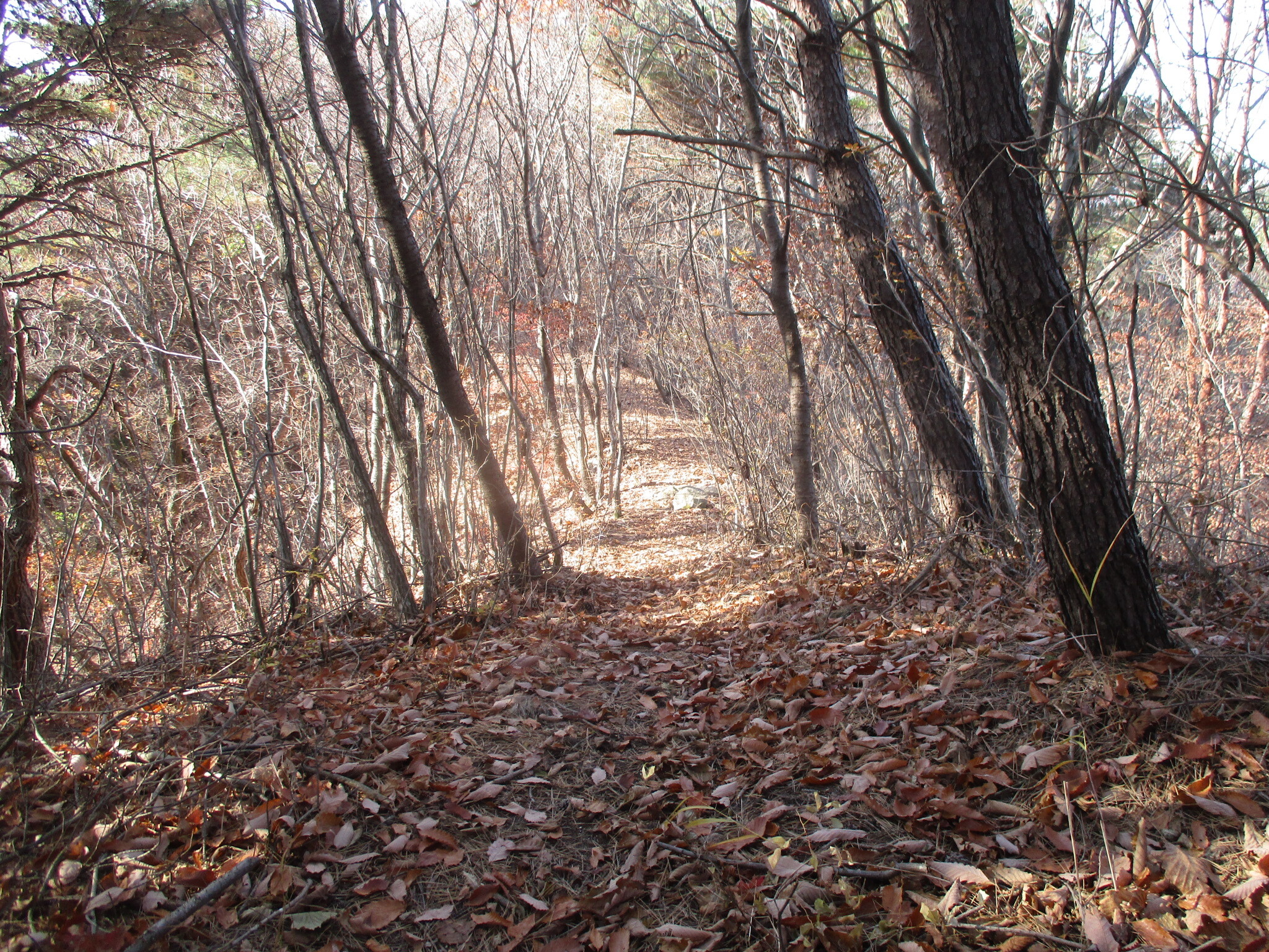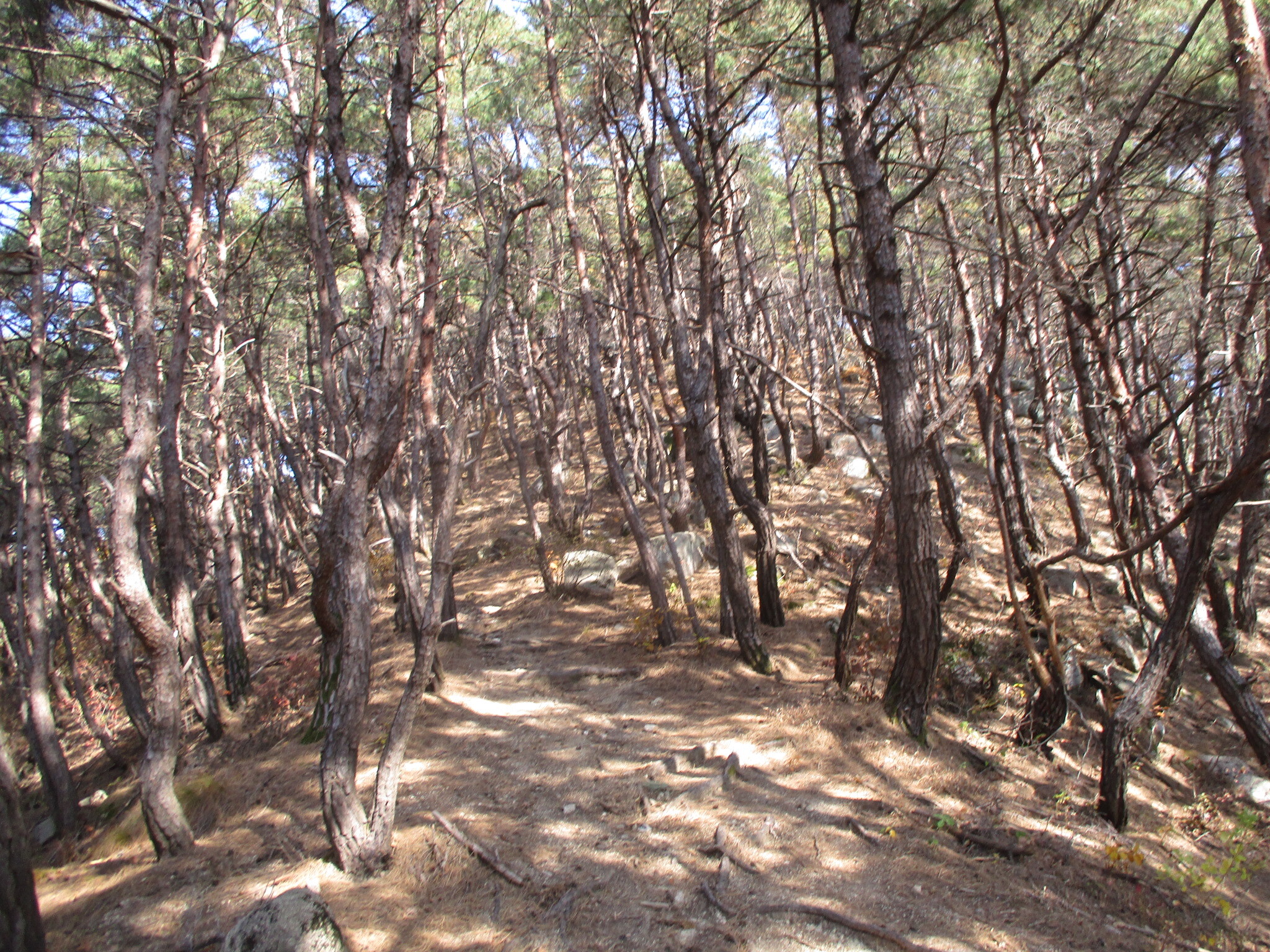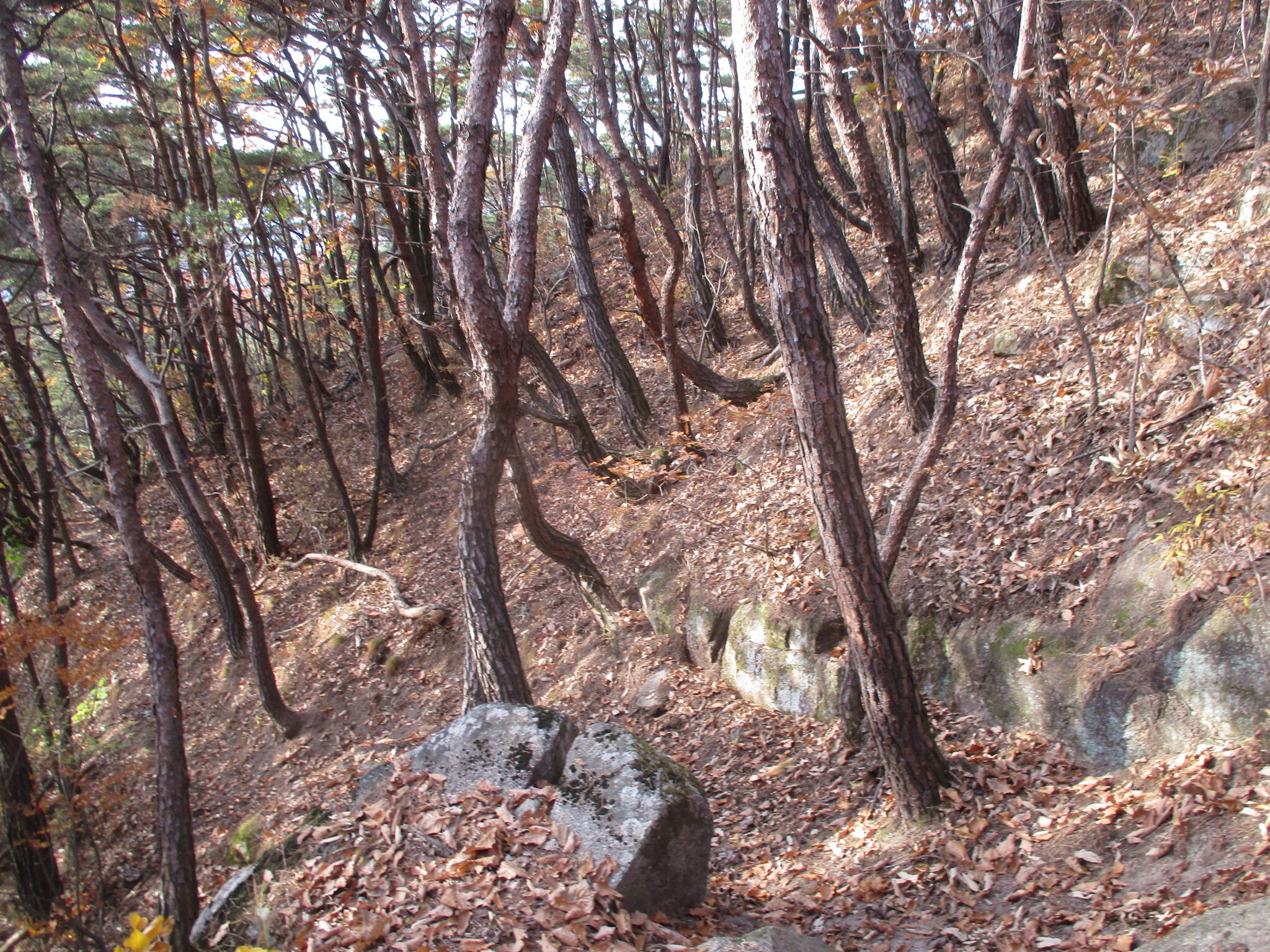 흐릿한 사면으로(갈림길 주의)~굽은 소나무,넘어진 소나무 연이어 지나~다시 왼쪽 사면으로 우회~다시 만나는