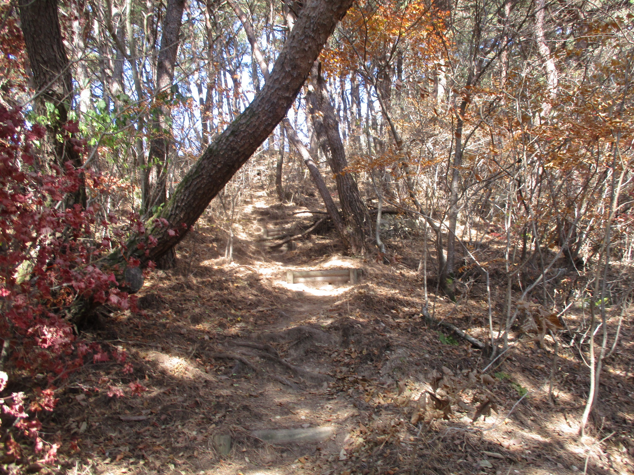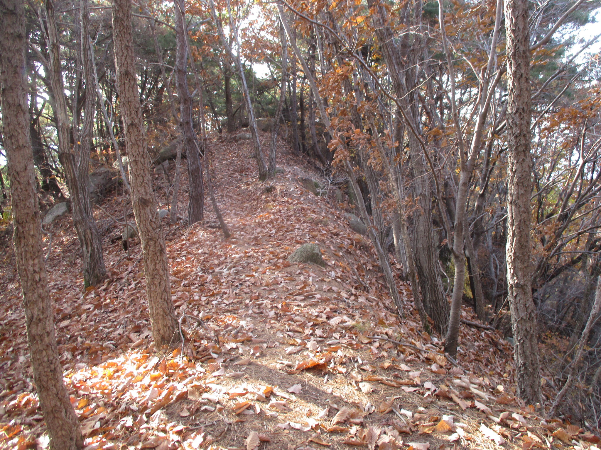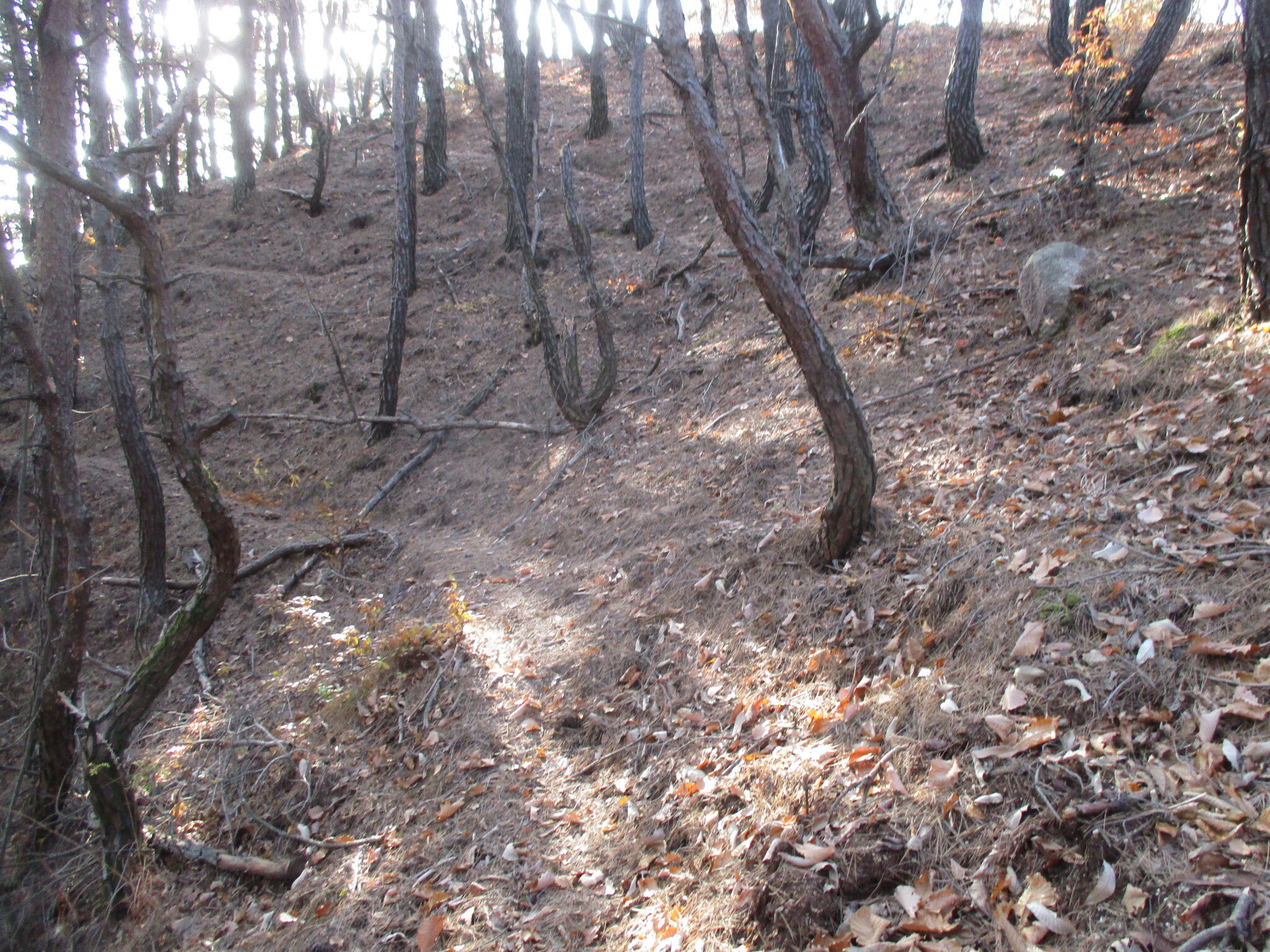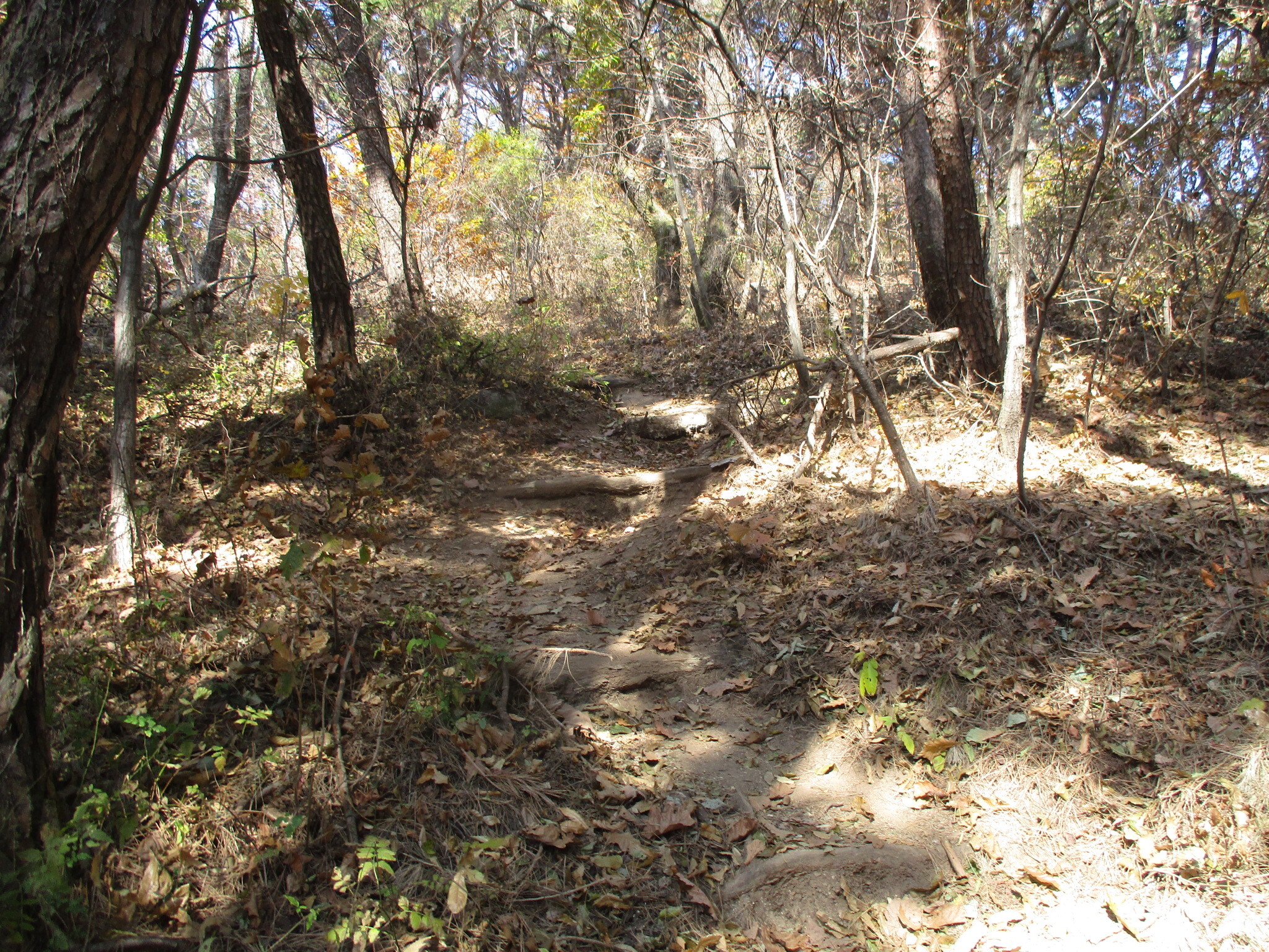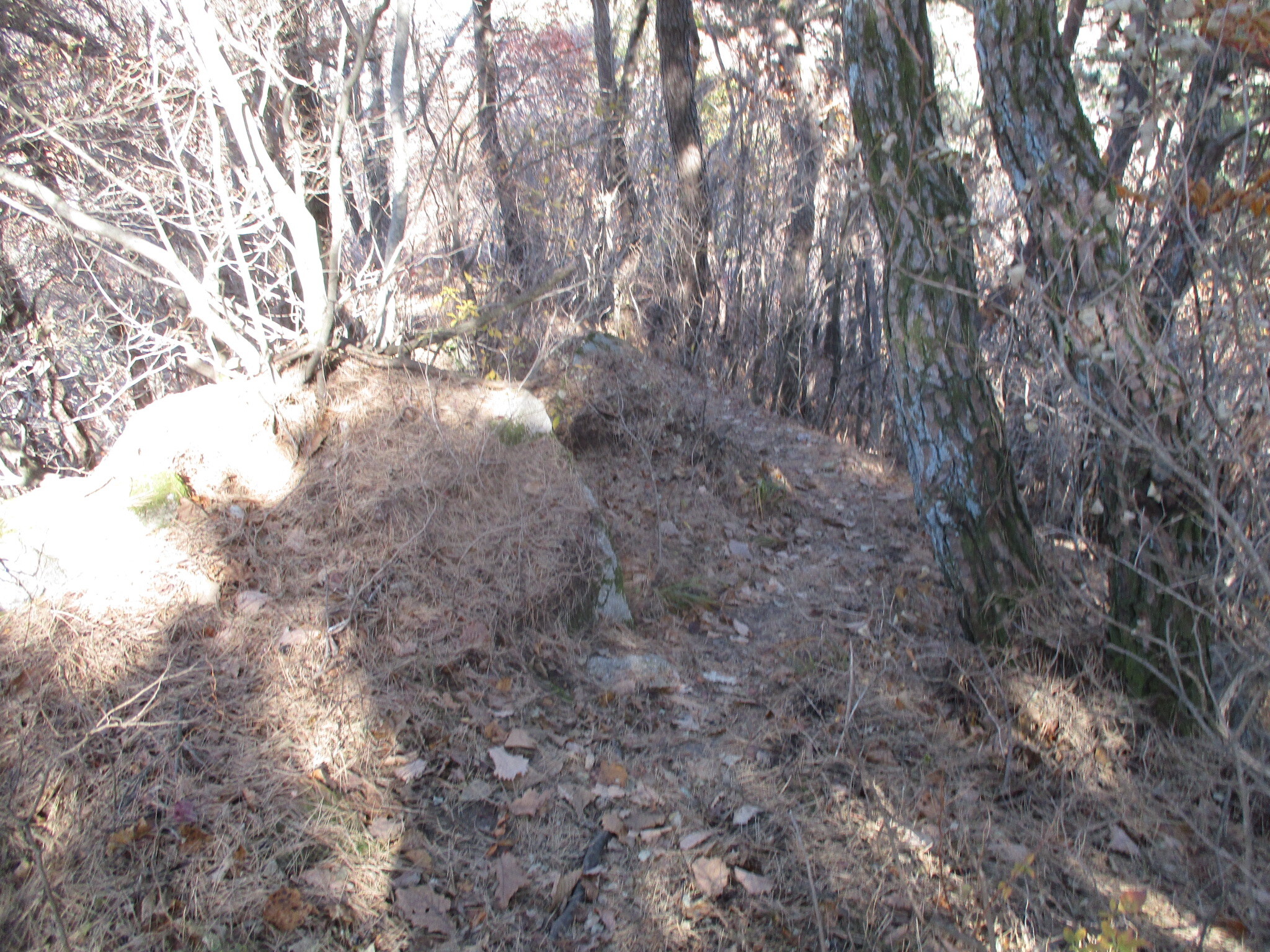 흐릿한 사면으로(갈림길 주의)~굽은 소나무,넘어진 소나무 연이어 지나~다시 왼쪽 사면으로 우회~다시 만나는