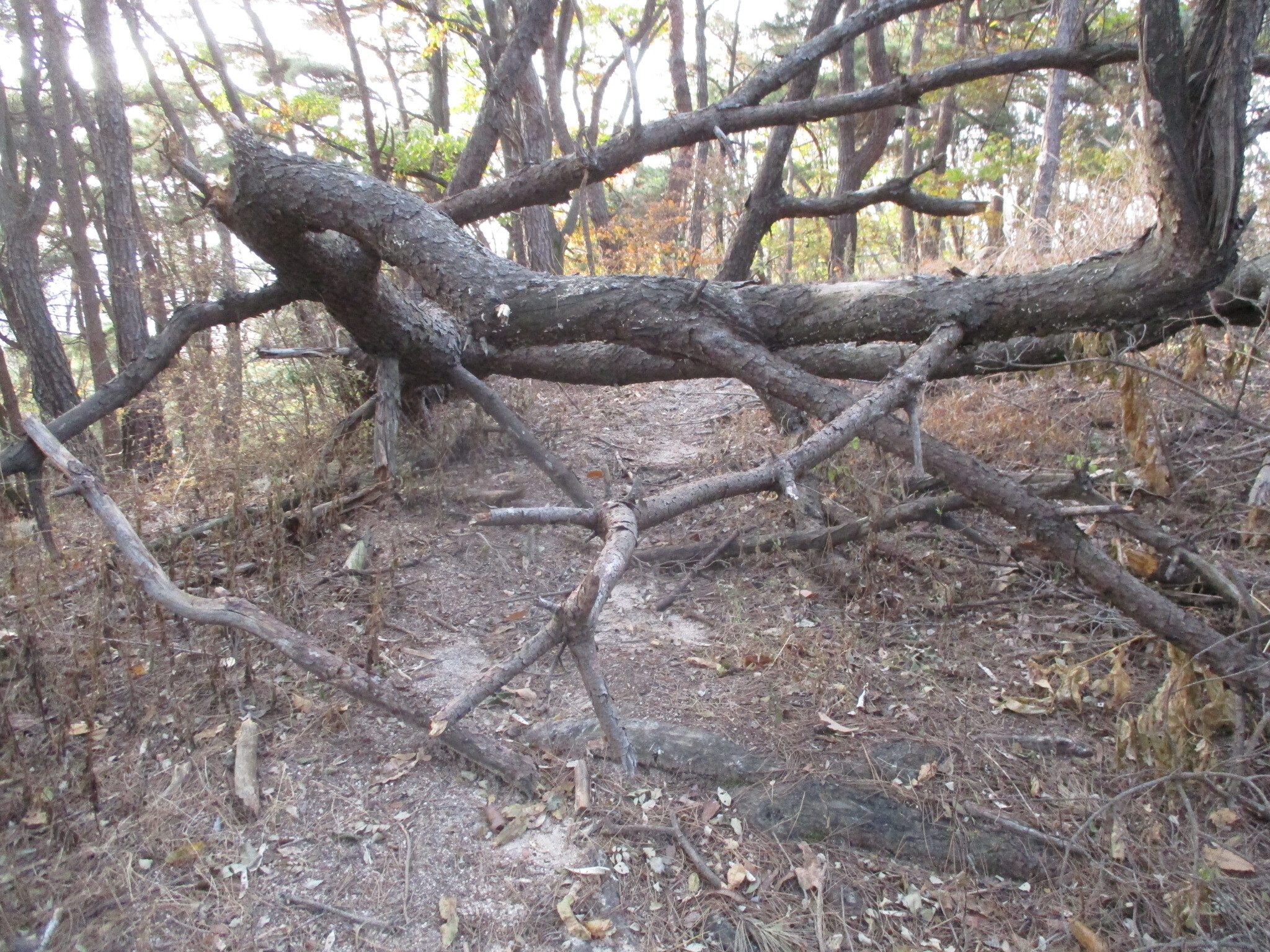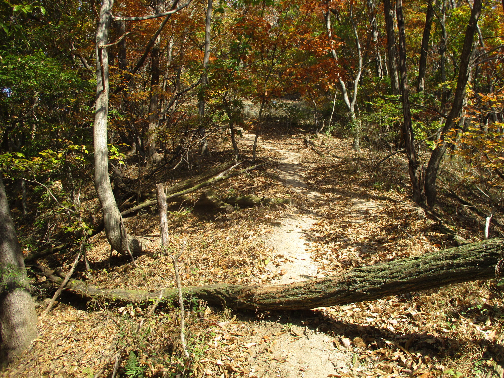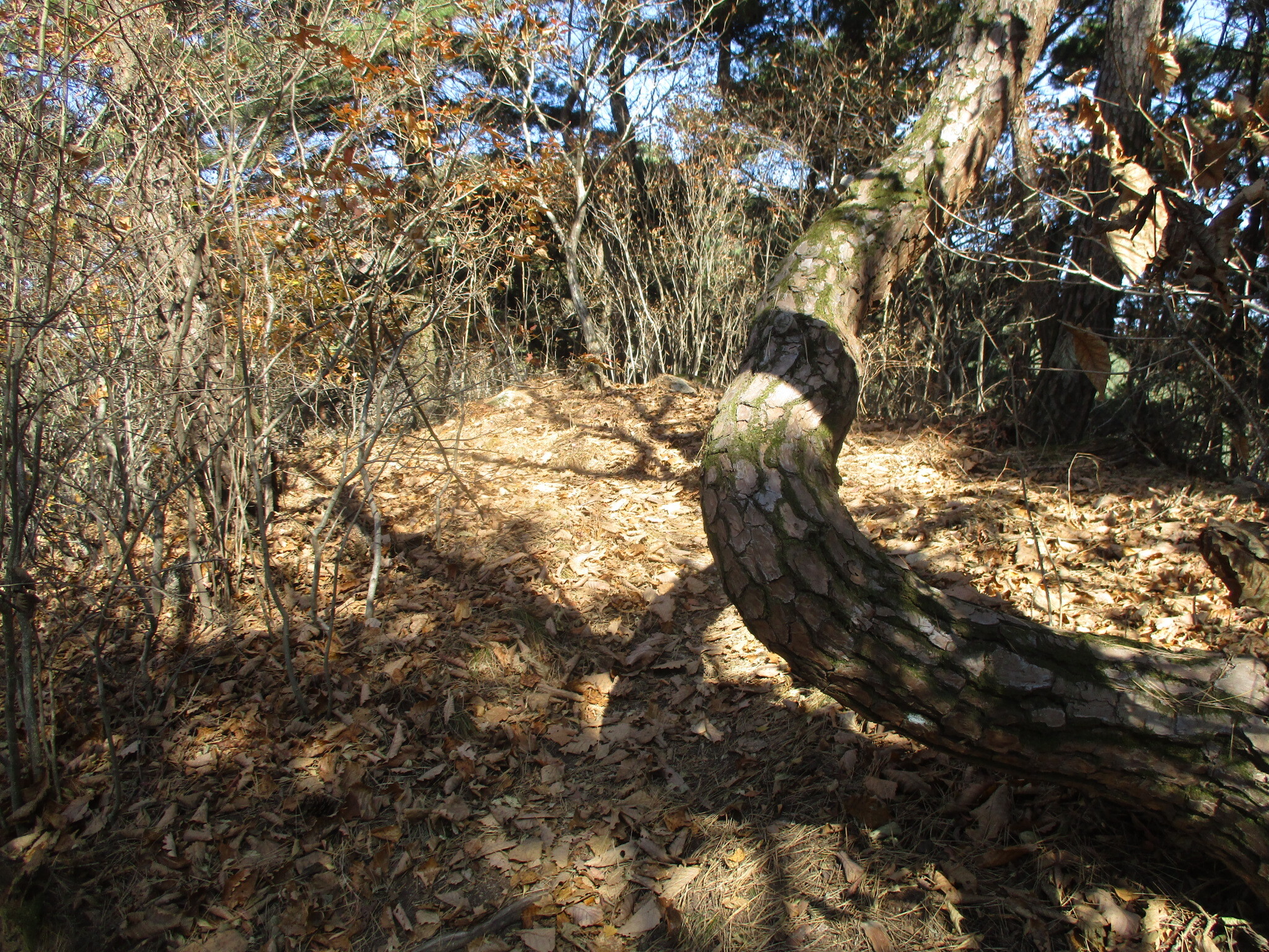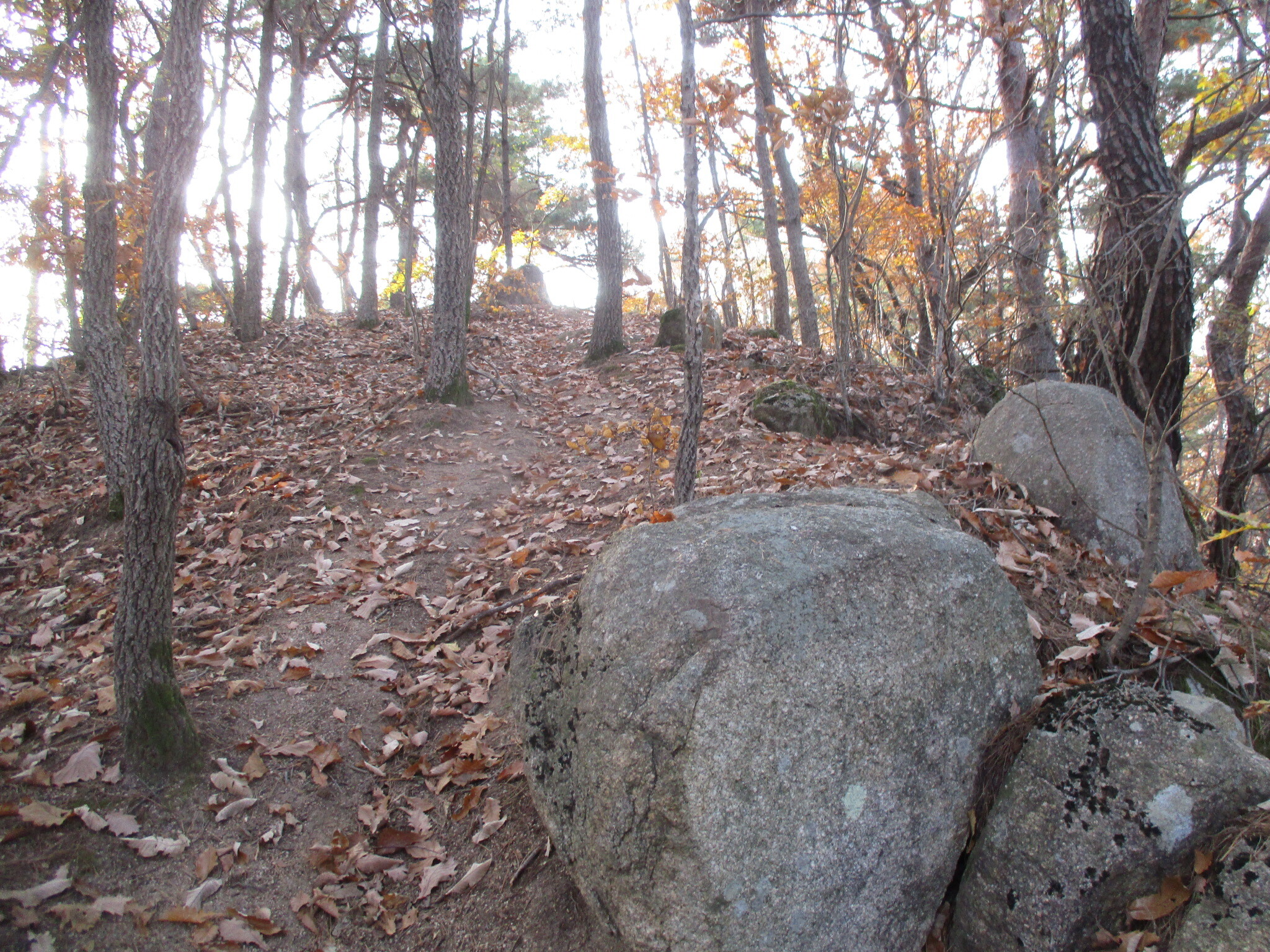 흐릿한 사면으로(갈림길 주의)~굽은 소나무,넘어진 소나무 연이어 지나~다시 왼쪽 사면으로 우회~다시 만나는