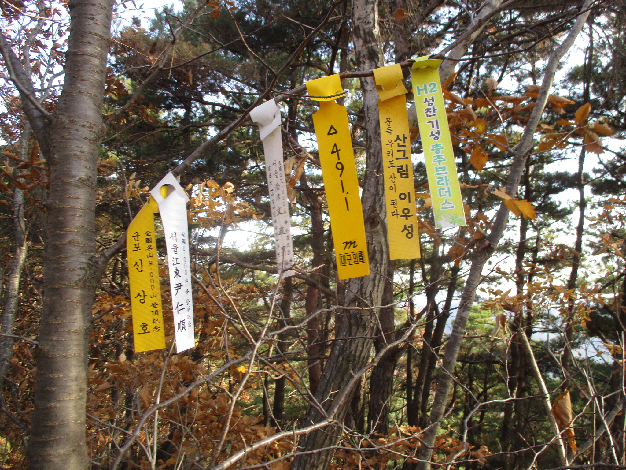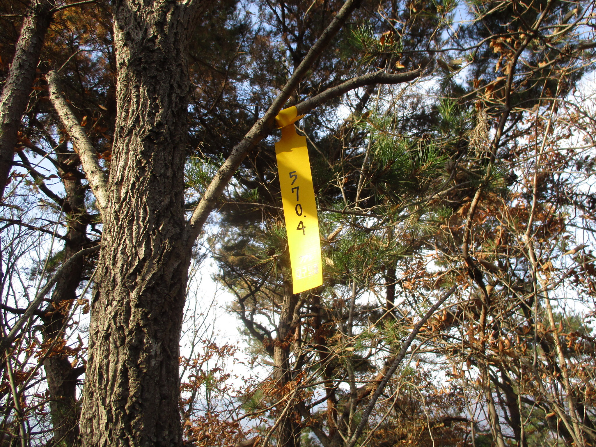 쉬엄쉬엄 올라서서 '세상에 이런 일이!~' 푸로에도 등장한 산따묵기 고수 표지기가 달리있는 570.4봉에 뫼들 표지기도 걸고~