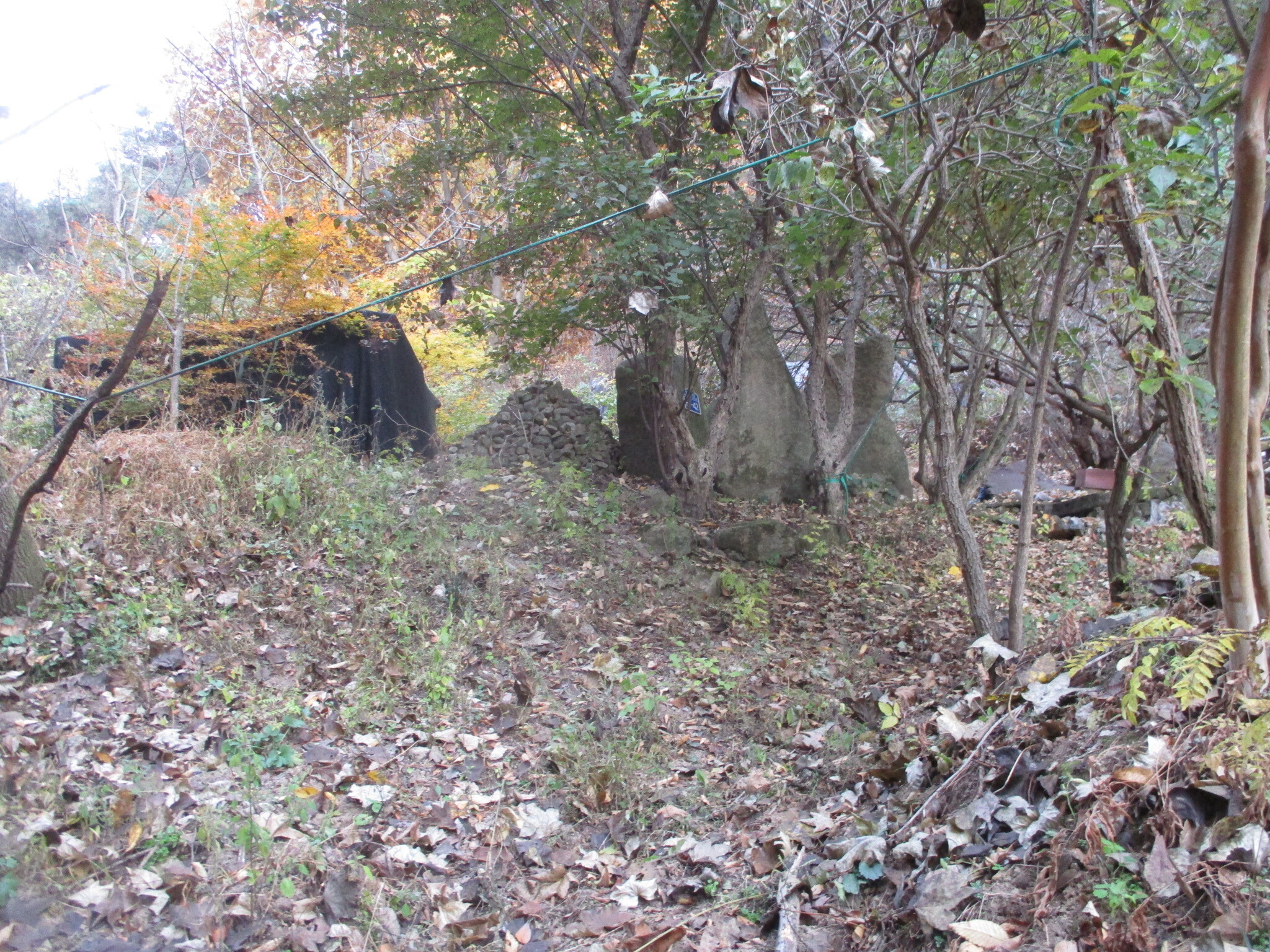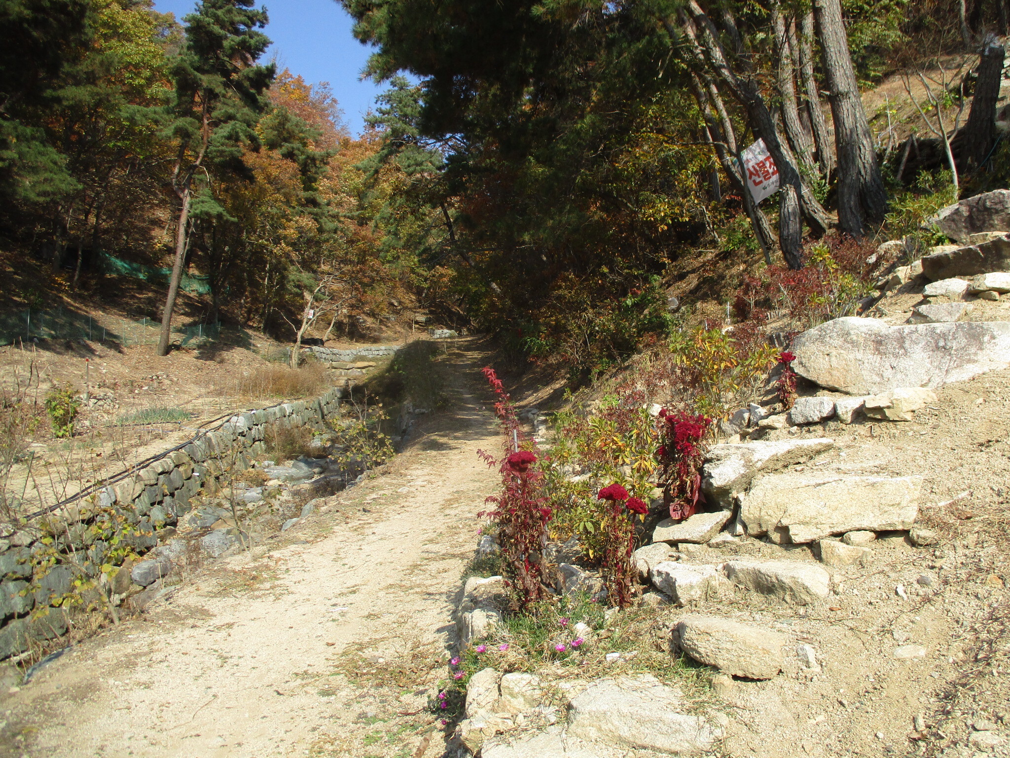 예전에는 여가 과수원인 모양이다!~ 터덜터덜 내리오다 보면 왼쪽으로 잘 정돈된 묘가 보이고 퍼런 비니루 움막이 연이어